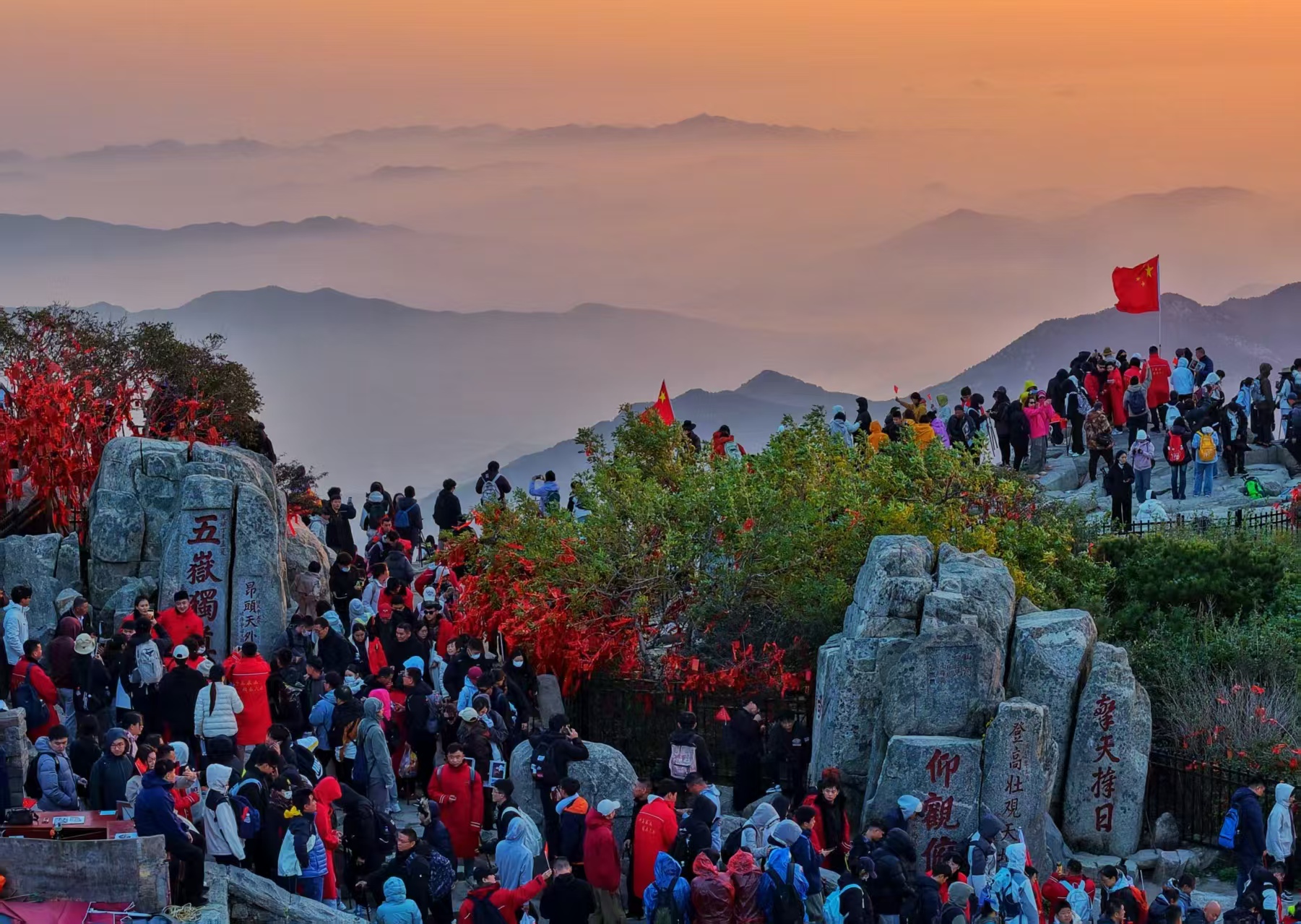 逾萬(wàn)名遊客在泰山之巔為祖國(guó)慶生