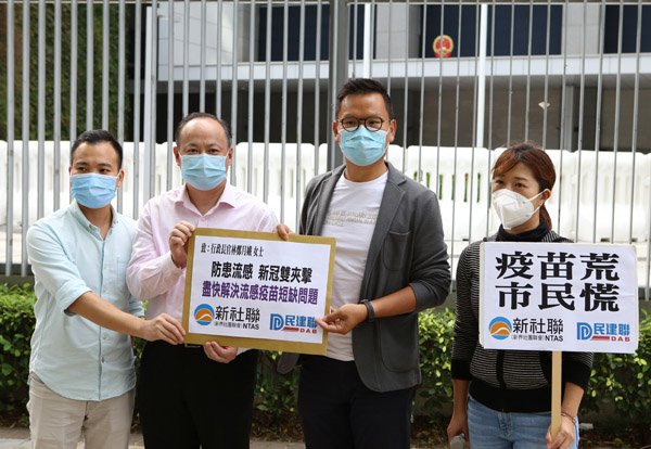 請願代表促請?zhí)貐^(qū)政府盡快公佈將於10月22日開始推行的「政府防疫注射計劃」接種細則,同時協(xié)助解決市面流感疫苗短缺問題,並應(yīng)繼續(xù)加強對市民戴口罩防疫和個人衛(wèi)生清潔的宣傳,以減低受到流感和新冠疫情的雙重影響。(記者 唐信恆)