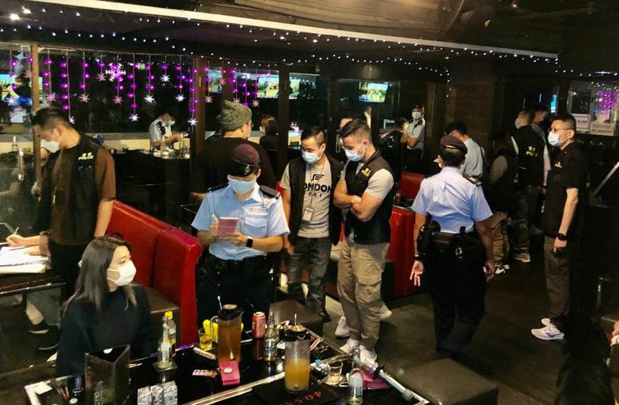 專家指現(xiàn)階段防疫措施不宜太鬆手。圖為警方巡查酒吧等處所。(中新社)
