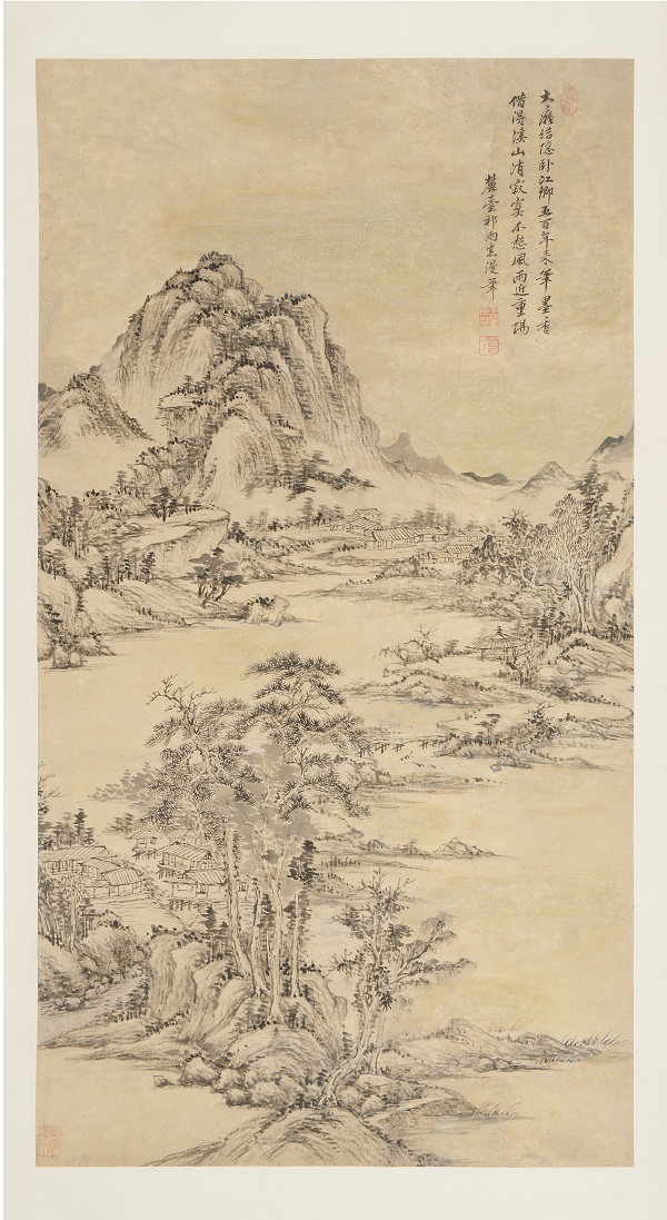 款識:大癡結(jié)隱臥江鄉(xiāng),五百年來筆墨香。借得溪山消寂寞,不愁風(fēng)雨近重楊。麓臺祁雨意漫筆。