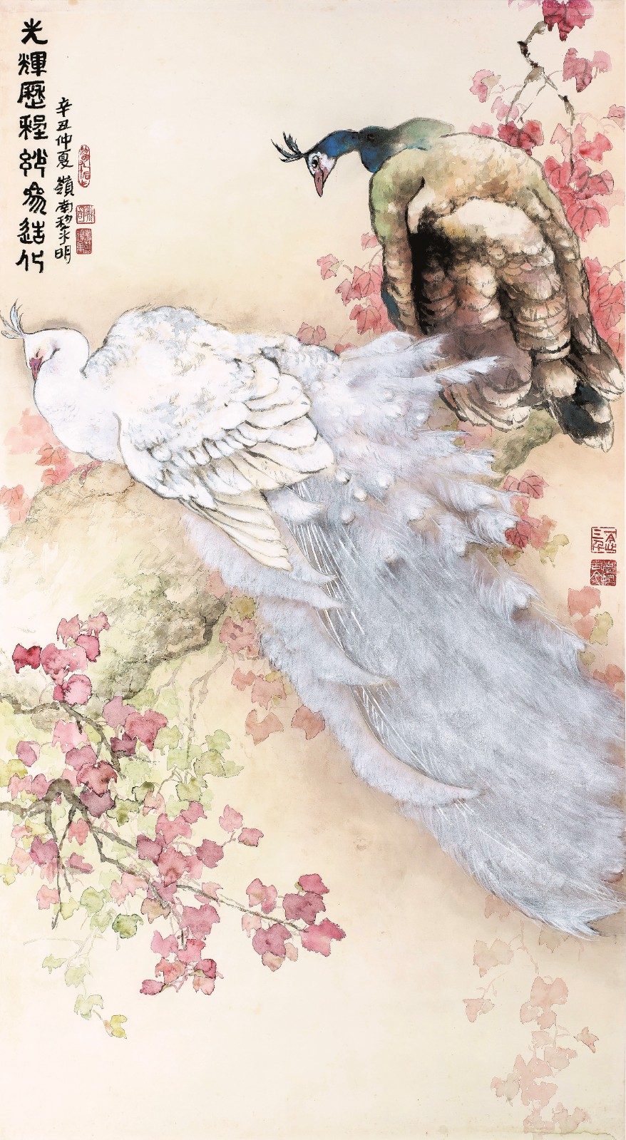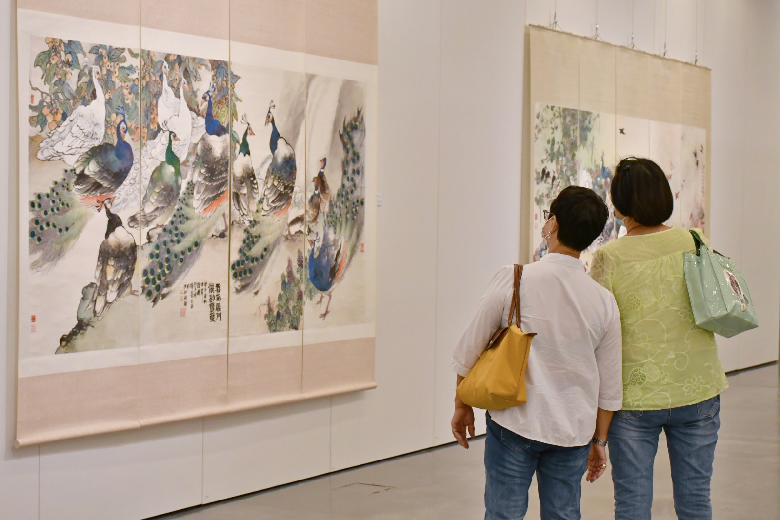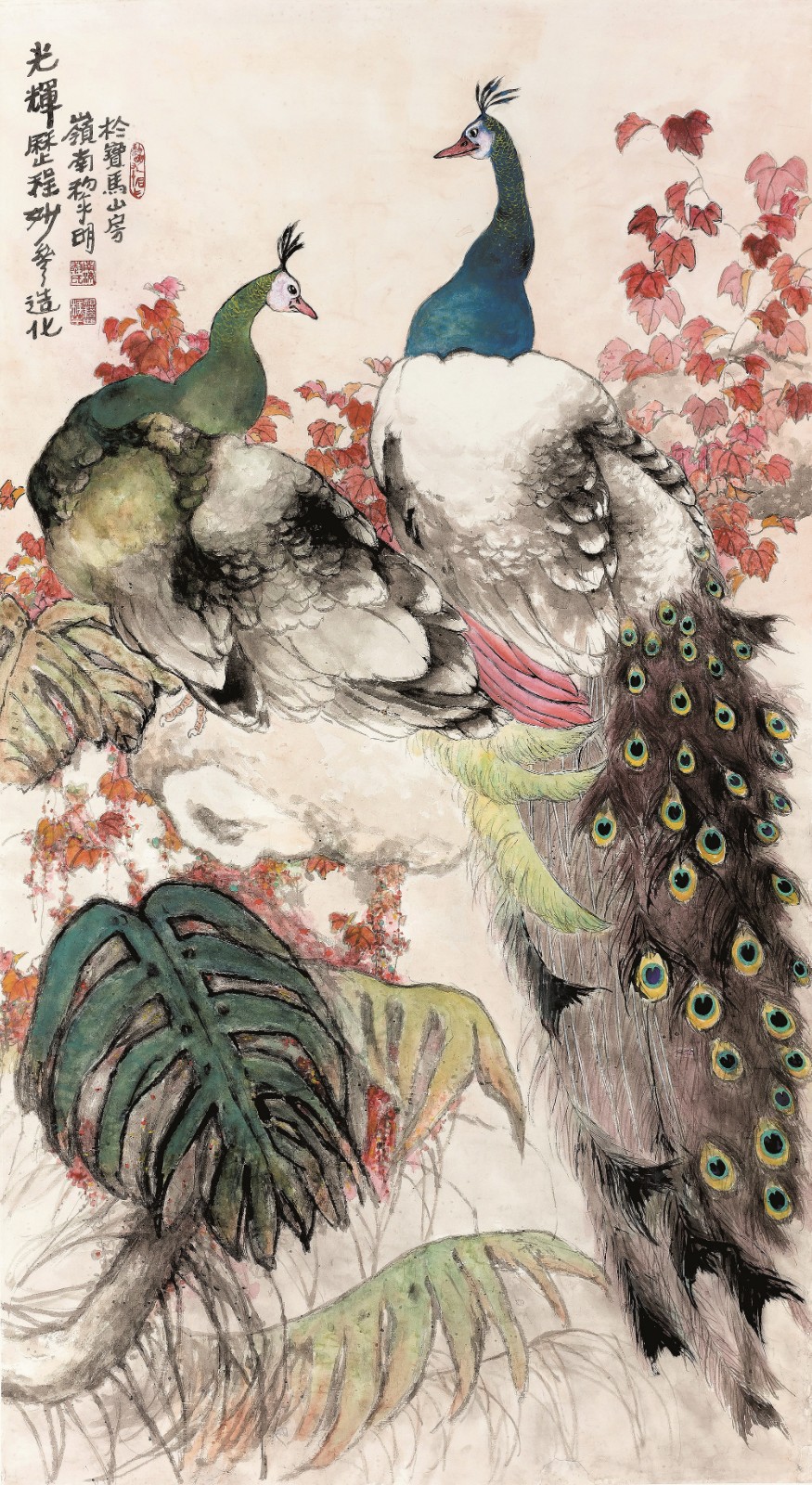 縱然已屆92歲高齡,黎明仍堅持創(chuàng)作,展覽呈現(xiàn)他今年8月創(chuàng)作的作品,包括兩幅描繪孔雀的《光輝歷程》與《妙參造化》。
