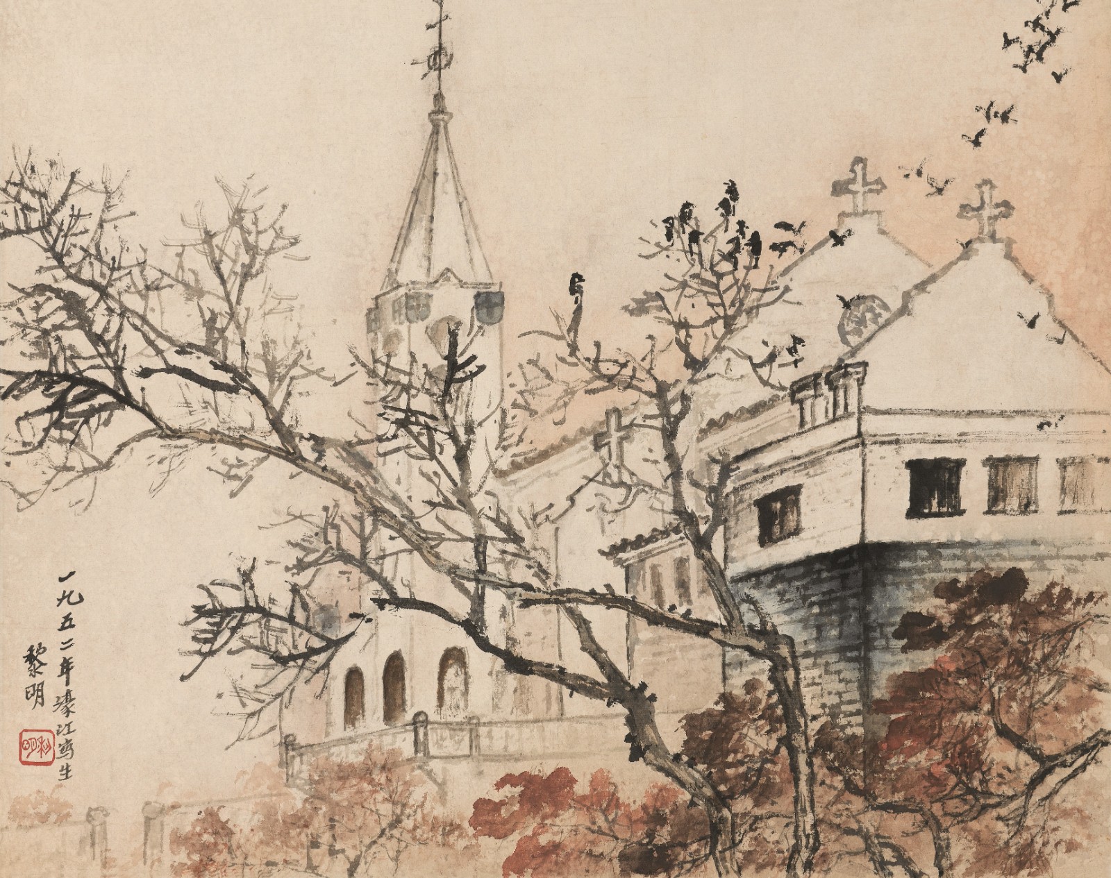 黎明作品《澳門主教山》,1952年,34×43cm。