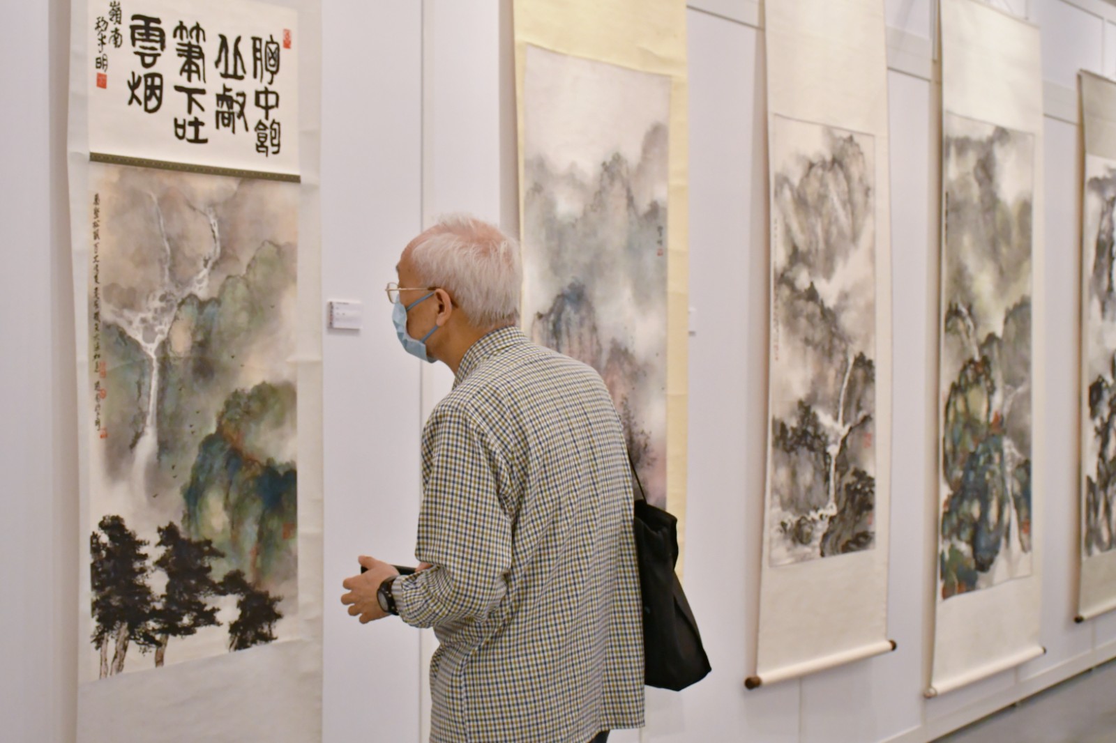 展覽呈獻(xiàn)黎明創(chuàng)作的不同題材作品,如山水畫。