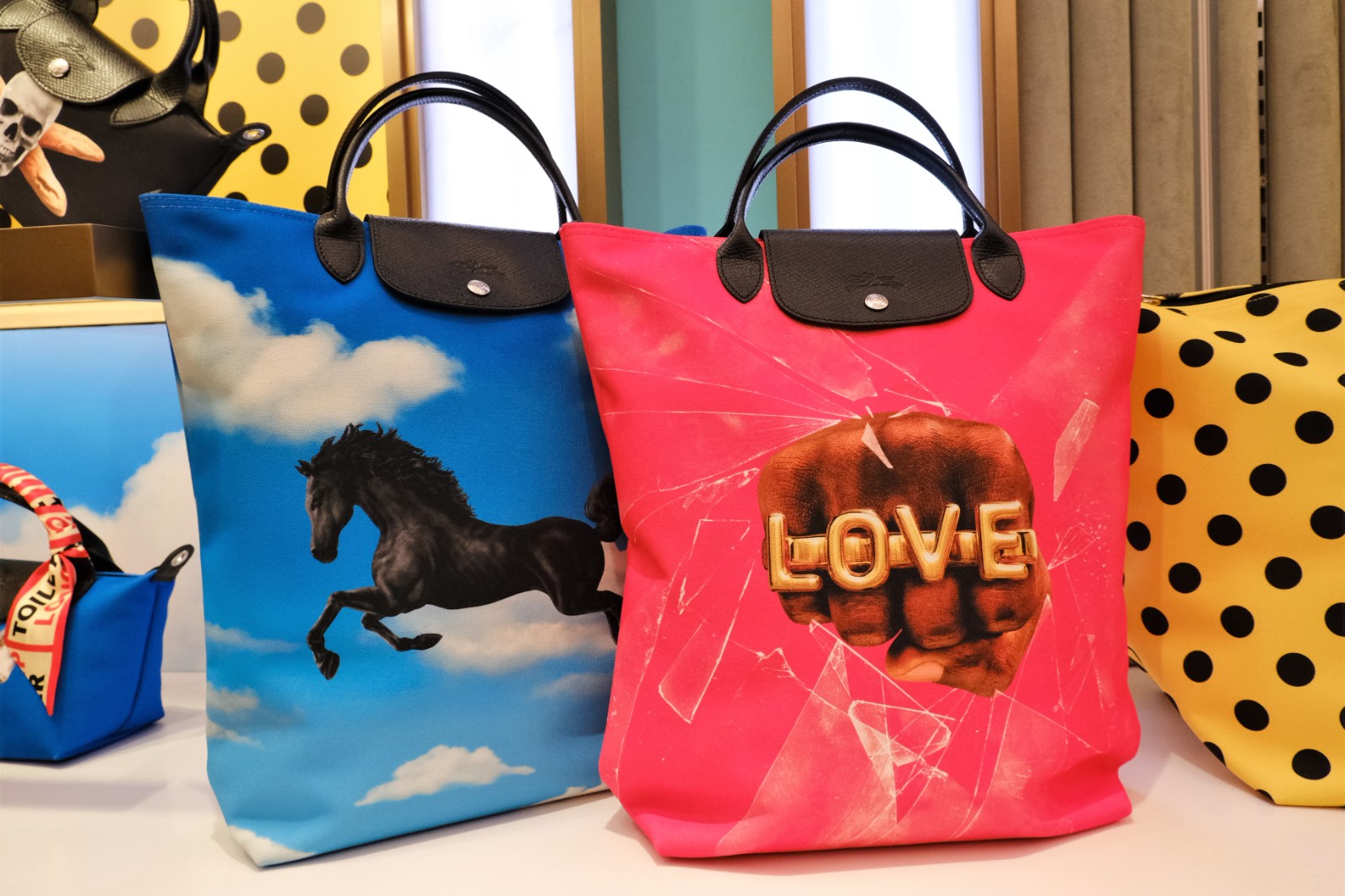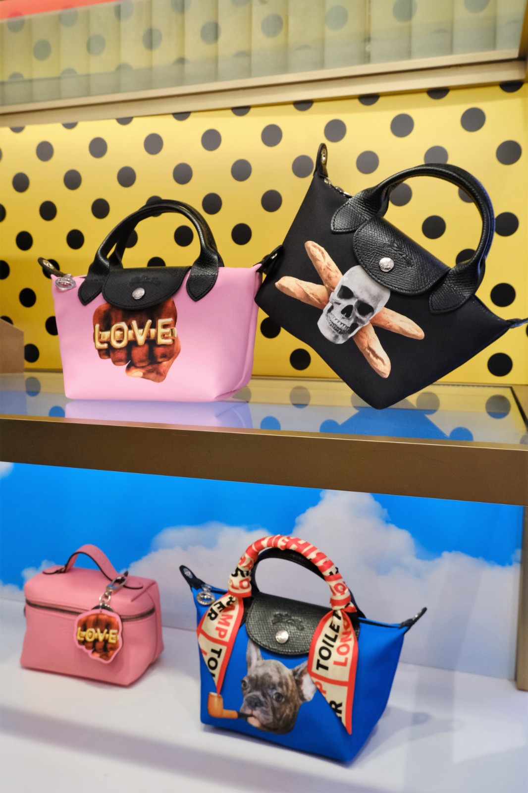 今個秋冬,品牌邀請TOILETPAPER為經(jīng)典的Le Pliage手袋注入新元素,創(chuàng)作了五款幽默可愛的圖案應(yīng)用於不同尺寸的手袋上,並加入品牌的經(jīng)典元素,如把奔馬logo改造為充滿跳躍動感的黑色奔馬、法國鬥牛犬口中咬住了品牌的象徵——煙斗,或?qū)⒎ㄊ介L麵包融入骷髏頭中,玩味前衛(wèi)。是次採用了糖果粉紅色、天空藍色和搶眼的黃黑波點色等充滿活力的色調(diào),並備有四種袋形選擇,包括使用再生聚酯帆布製造的Le Pliage旅行袋、斜揹手袋、Tote Bag手提袋和迷你袋,涵蓋不同需要。