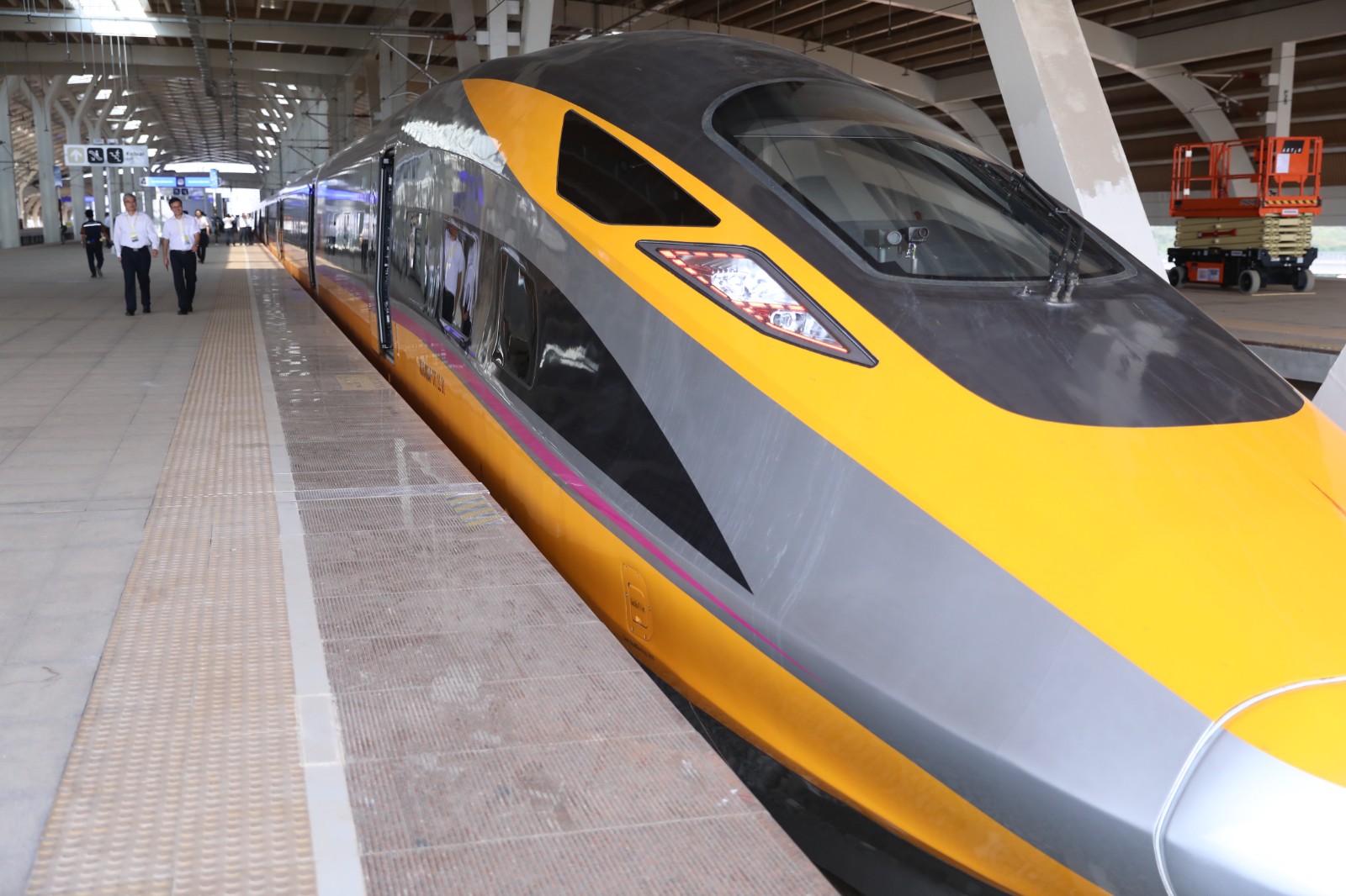 當(dāng)?shù)貢r(shí)間9月6日,一列雅萬(wàn)高鐵高速動(dòng)車組??吭诠奋囌?。雅萬(wàn)高鐵連接印尼首都雅加達(dá)和第四大城市萬(wàn)隆,全長(zhǎng)142公里,設(shè)計(jì)最高時(shí)速350公里,是中國(guó)高鐵首次全系統(tǒng)、全要素、全產(chǎn)業(yè)鏈在海外落地,由中國(guó)和印尼合資設(shè)立的中印尼高鐵公司負(fù)責(zé)投資、建設(shè)、運(yùn)營(yíng)。(圖源:中新社)