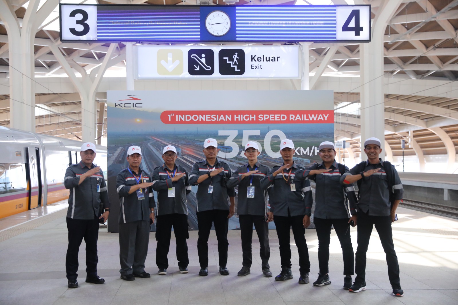 當(dāng)?shù)貢r(shí)間9月6日,工作人員在雅萬(wàn)高鐵哈利姆車站合影,該站是雅加達(dá)第一站,有「椰城東大門」之稱。