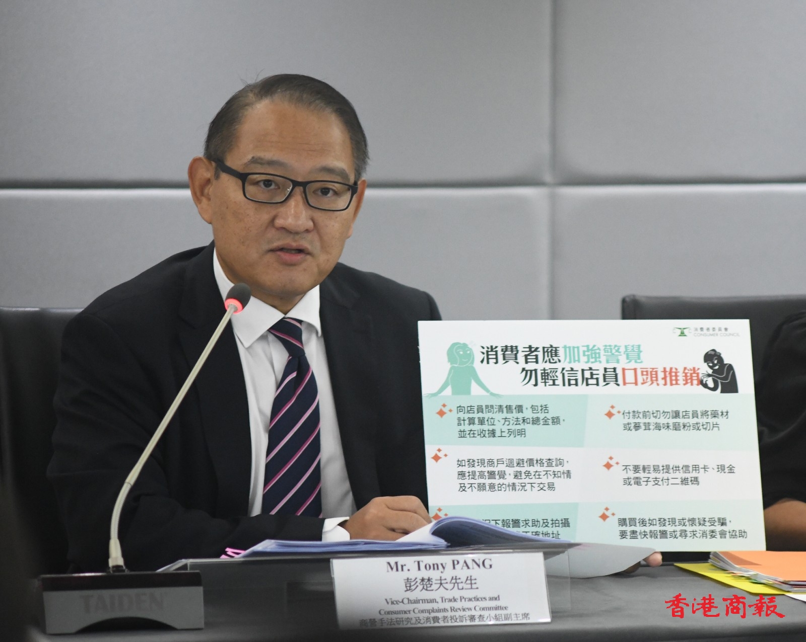 消委會7日點名譴責(zé)銅鑼灣4間藥店涉及俗稱「斤變両」「両變錢」的不良營商手法。(記者 蔡啟文攝)