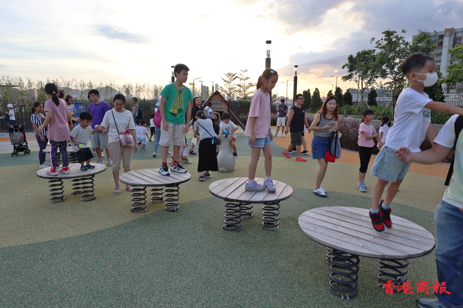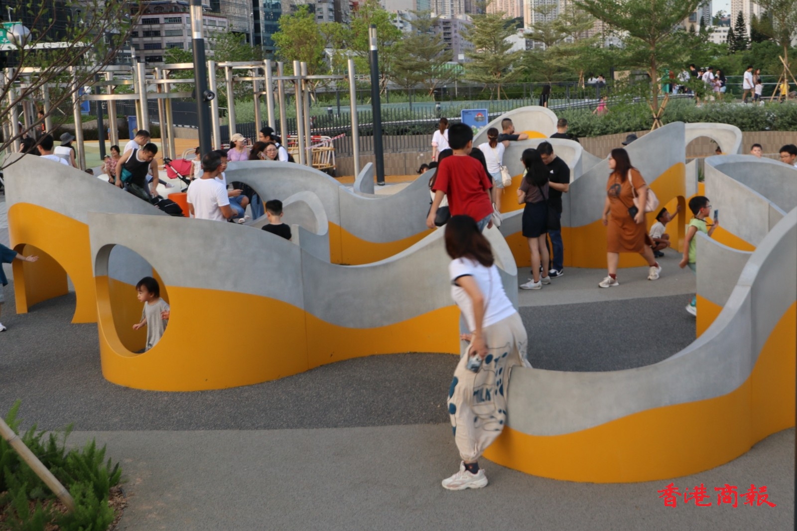 渠務(wù)署的觀塘污水泵房?jī)?yōu)化工程順應(yīng)民意,在泵房上蓋建公園,設(shè)計(jì)概念是「好玩自然」,五個(gè)遊戲區(qū)以自然元素如天、地、陽光、水和空氣為主題,場(chǎng)內(nèi)提供15個(gè)不同遊樂體驗(yàn),合共超過60組遊樂設(shè)施,如攀爬地貌、鞦韆、風(fēng)車、兒童跑步徑、渠管迷宮、滑梯等,鼓勵(lì)小朋友探索大自然和帶來感官體驗(yàn),更採納小孩子的建議,增設(shè)樹屋和嬉水區(qū)等玩樂設(shè)施。令公園不僅僅是綠化和休憩的空間,也成為兒童遊戲奔跑的好地方。公園亦設(shè)有嬰幼兒空間和無障礙設(shè)施,讓不同人士都能享受其中,達(dá)至傷健共融。(馮瀚文 攝)