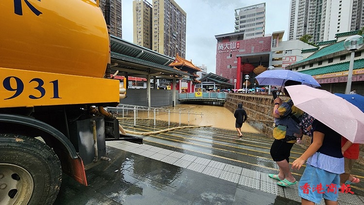 天文臺昨晚(7日)11時05分發(fā)出今年首個黑色暴雨警告信號,生效超過12小時,打破1999年8月23日的紀錄,當年的生效時間是5小時47分鐘。在黑色暴雨下的黃大仙中心北館成為其中一個重災區(qū),最低的地庫層幾乎被大量雨水浸至「沒頂」,估計損竹失十分慘重。而在附近的龍翔道往觀塘方向仍然封閉,加上港鐵觀塘線多個車站列車停駛,上址交通近乎停頓。