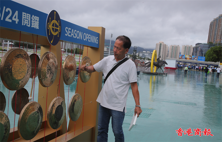 馬場(chǎng)內(nèi)設(shè)置「開運(yùn)銅鑼」,不少馬迷入場(chǎng)時(shí)敲響銅鑼祈求好運(yùn),而入場(chǎng)的馬迷同時(shí)可獲贈(zèng)2023/24馬季賽事月曆一個(gè)。(文、圖:志誠(chéng))