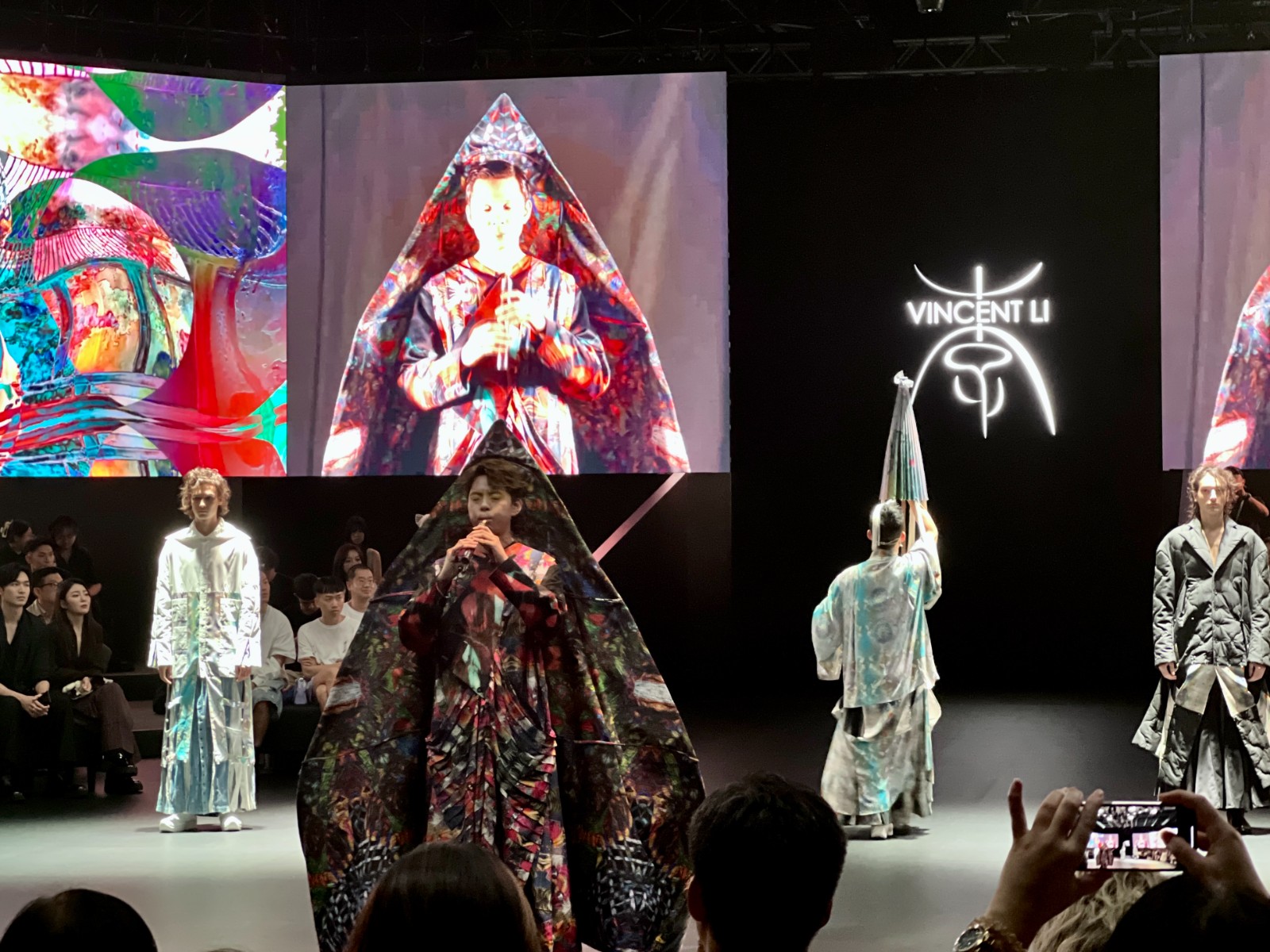 在時(shí)裝秀的尾聲,香港時(shí)裝設(shè)計(jì)師Vincent Li、中國藝術(shù)舞蹈家彭漲及香港中樂團(tuán)嗩吶首席樂手暨管演奏家馬瑋謙,為觀眾帶來了一場名為「曲·音·裳」的表演。這場跨界合作表演將時(shí)裝、國樂和藝術(shù)舞蹈融合,充滿意象和生命力,將觀眾的情感引領(lǐng)至另一個(gè)境界,為「FASHION FUSING大灣區(qū)聯(lián)合時(shí)裝秀@CENTRESTAGE 2023」畫上圓滿句號。