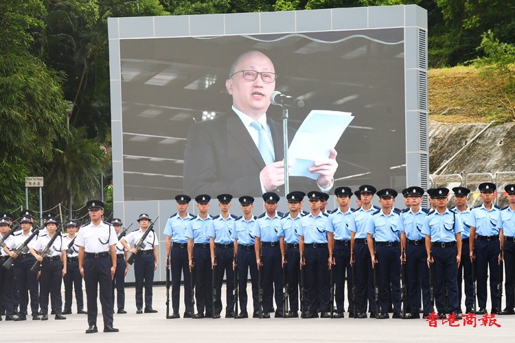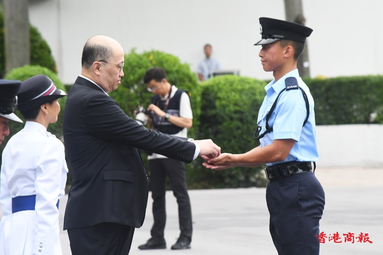 據(jù)悉,此次結(jié)業(yè)會(huì)操是第一次由中聯(lián)辦主任擔(dān)任檢閱官。鄭雁雄檢閱畢業(yè)的28個(gè)見習(xí)督察,以及127個(gè)警員,並向成績優(yōu)異的警員頒授施禮榮盾及榮譽(yù)警棍等。