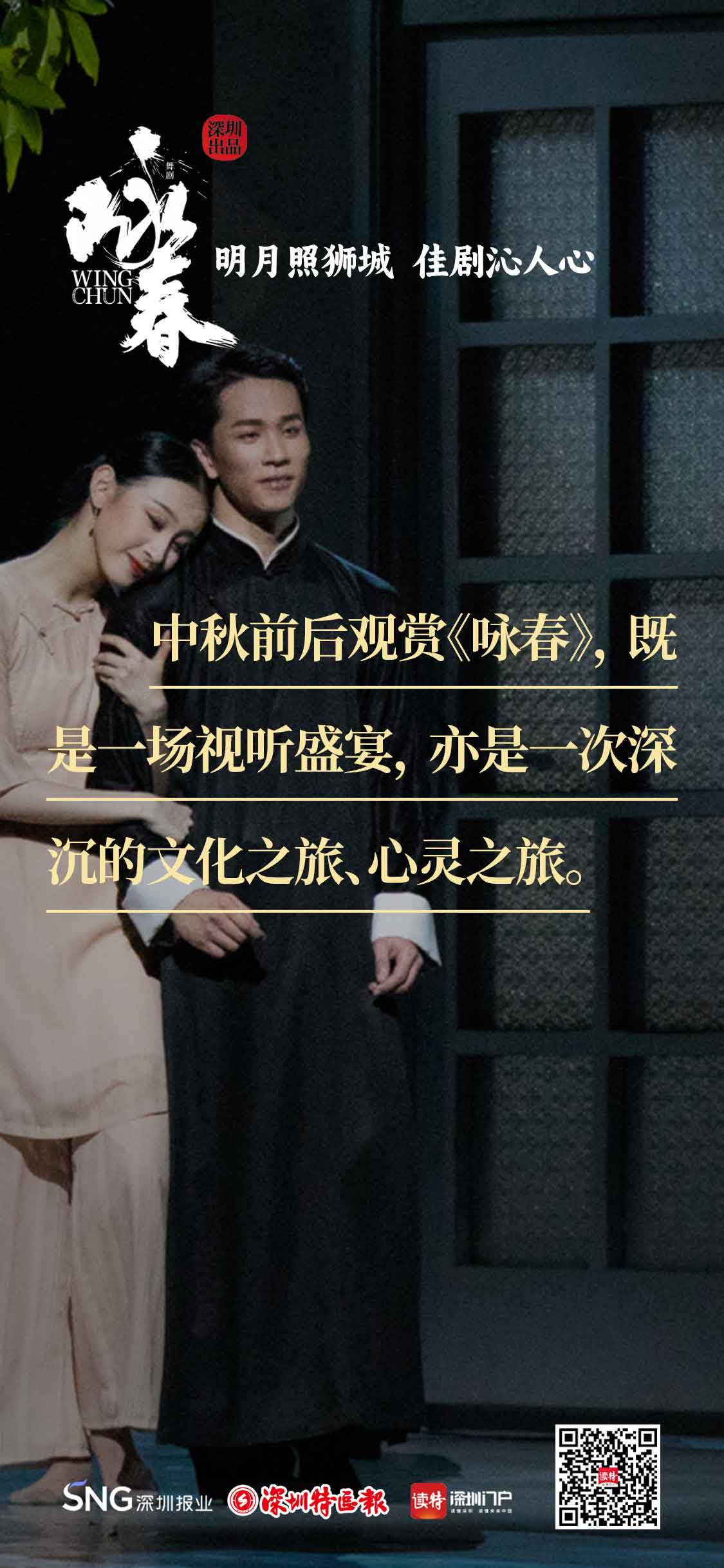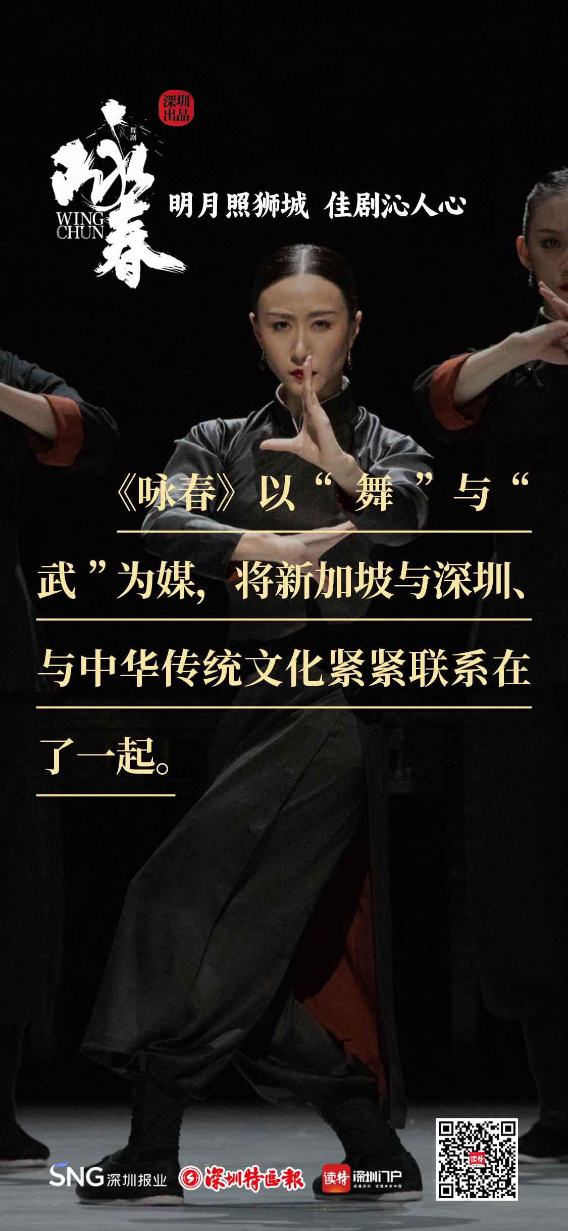 一年月色最明夜,千里人心共賞時(shí)。《詠春》在以華人為主體的新加坡演出期間,恰逢中秋佳節(jié)。千百年來(lái),在中華民族的精神長(zhǎng)河裏,總有一輪明月朗照其上。中秋文化是全球華人獨(dú)特的精神密碼,中天皓月可引發(fā)心靈感應(yīng),凝聚文化認(rèn)同?!对伌骸芬浴肝琛古c「武」為媒,將新加坡與深圳、與中華傳統(tǒng)文化緊緊聯(lián)繫在了一起。