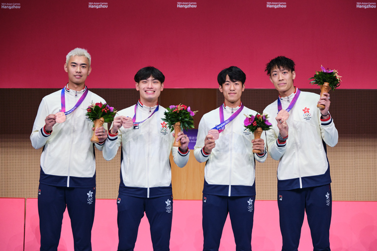 劍擊賽場(chǎng)今日同時(shí)舉行最後一日賽事,在男子重劍團(tuán)體賽,被列為二號(hào)種子直入8強(qiáng)在港隊(duì),以45比31擊敗烏茲別克,打入4強(qiáng),只是他們?cè)跍?zhǔn)決賽力戰(zhàn)以30比45負(fù)於哈薩克,未能晉身決賽,在不設(shè)季軍戰(zhàn)下,港隊(duì)首次拿下亞運(yùn)男重團(tuán)體賽銅牌,連計(jì)日前共奪1金1銀6銅的成績,香港劍擊隊(duì)在今屆亞運(yùn)共得9面獎(jiǎng)牌。