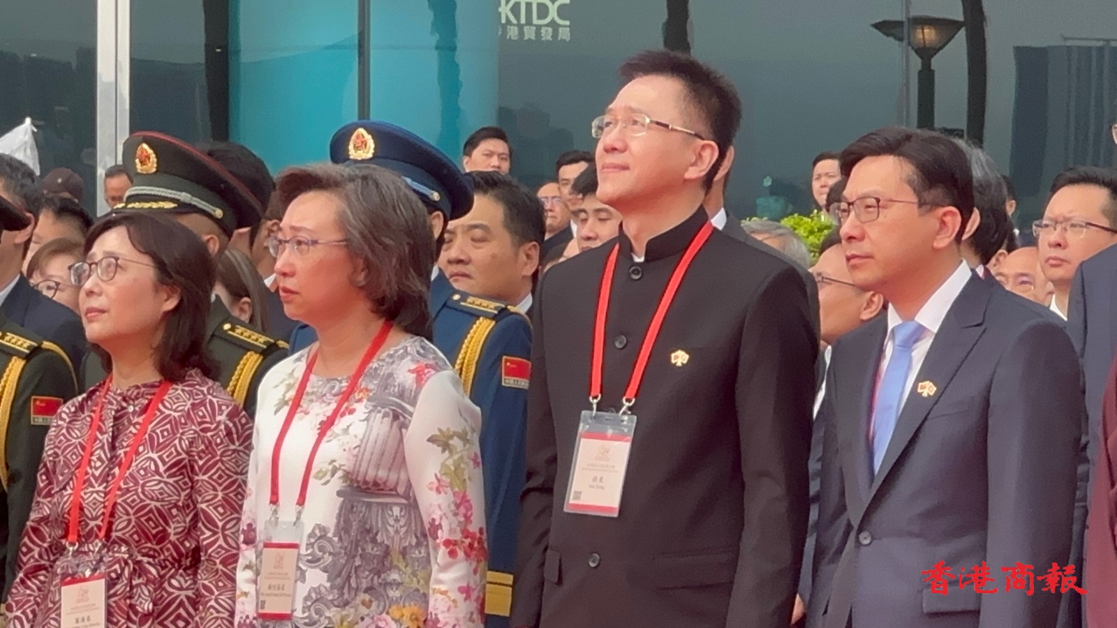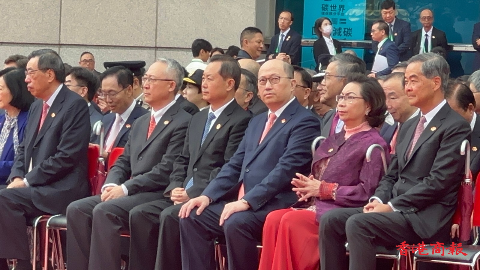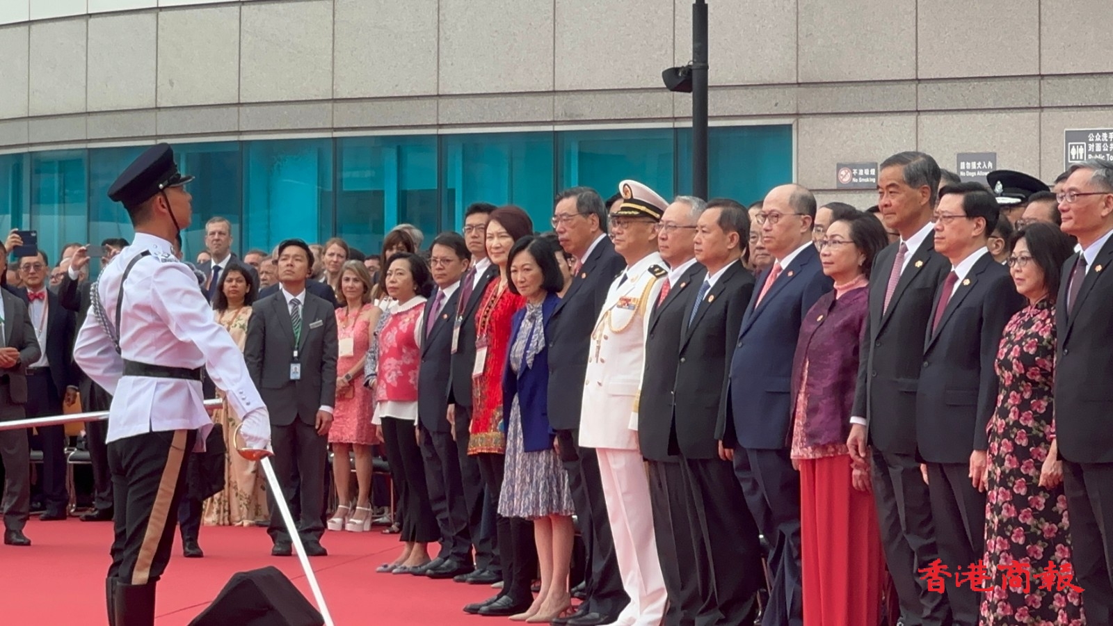 今日(10月1日)是中華人民共和國(guó)成立74周年國(guó)慶日,特區(qū)政府今早8時(shí)在灣仔金紫荊廣場(chǎng)舉行升旗儀式,全國(guó)政協(xié)副主席梁振英、香港特區(qū)行政長(zhǎng)官李家超、中央政府駐港聯(lián)絡(luò)辦主任鄭雁雄,駐港國(guó)家安全公署、外交部駐港特派員公署、解放軍駐港部隊(duì)負(fù)責(zé)人以及特區(qū)政府主要官員、行政會(huì)議成員和社會(huì)各界人士等出席。