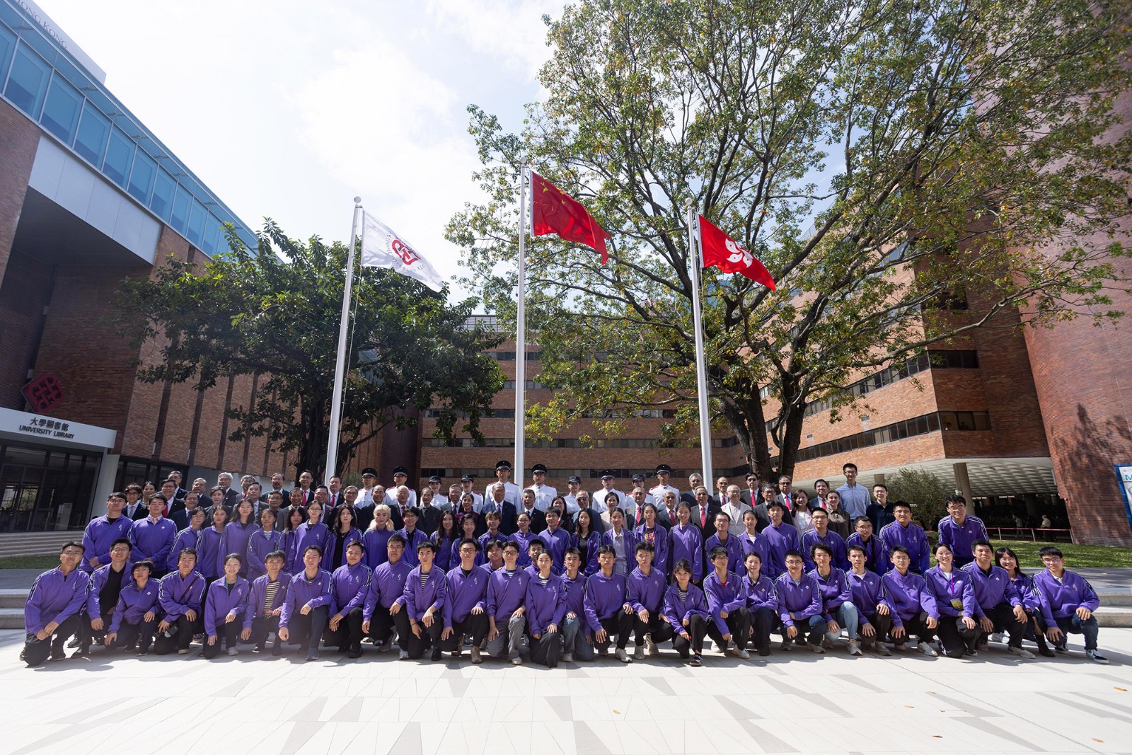理大於校園新地標大學廣場舉行升旗儀式,慶祝中華人民共和國成立74周年,逾一千名嘉賓、師生和校友出席。
