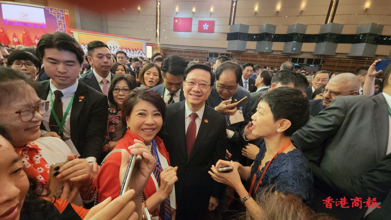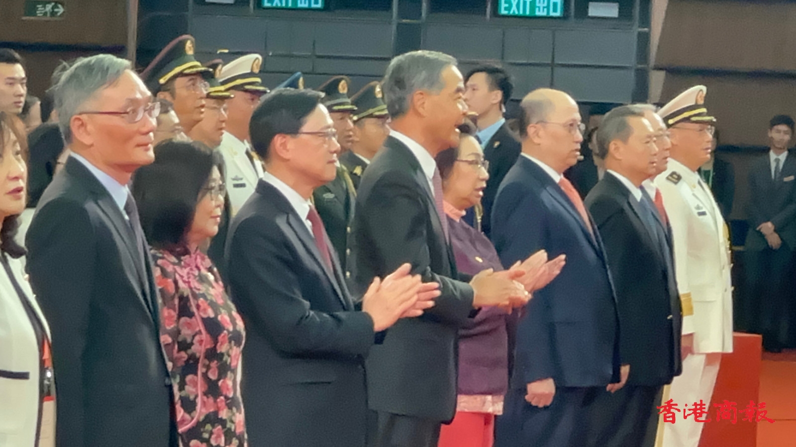香港今天先陰後晴,秋高氣爽,天氣可謂剛剛好。八點(diǎn)的升旗禮,七點(diǎn)不到會(huì)展中心已經(jīng)見到嘉賓入場(chǎng)的人龍。今年疫情消緩,兩地恢復(fù)正常往來,大家都在交換近況,聊個(gè)不停,現(xiàn)場(chǎng)感覺特別輕鬆和熱鬧。