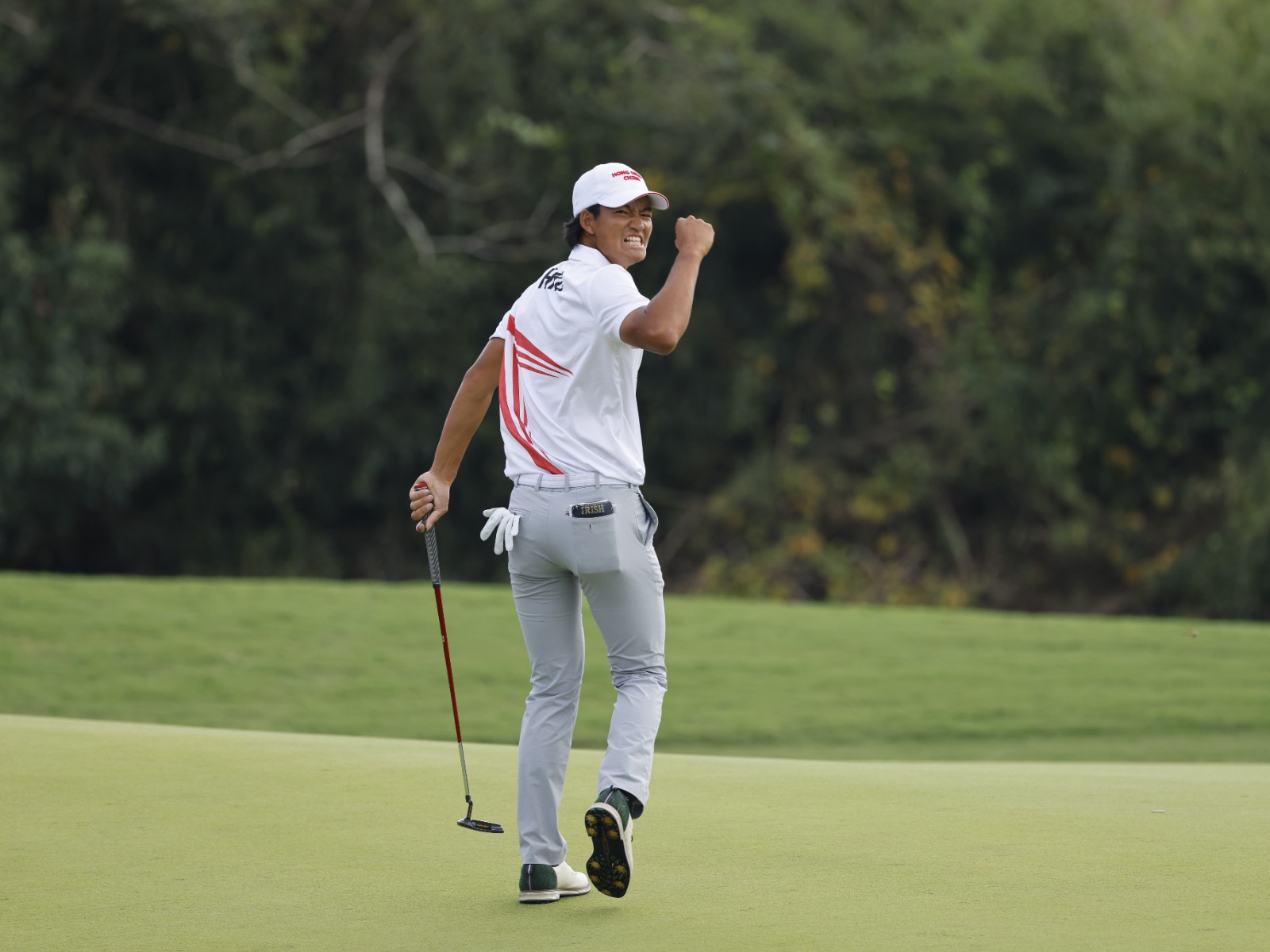 高球項(xiàng)目,許龍一於男子個(gè)人賽經(jīng)過3輪賽事後,一直處於榜首位置,來到今日煞科戰(zhàn),這位22歲球手頂住壓力,以低標(biāo)準(zhǔn)3桿的69桿完成,總成績(jī)低標(biāo)準(zhǔn)27桿的261桿,結(jié)果以1桿優(yōu)勢(shì)擊敗韓國的任成宰,勇奪金牌,這是香港高球史上首面亞運(yùn)獎(jiǎng)牌。