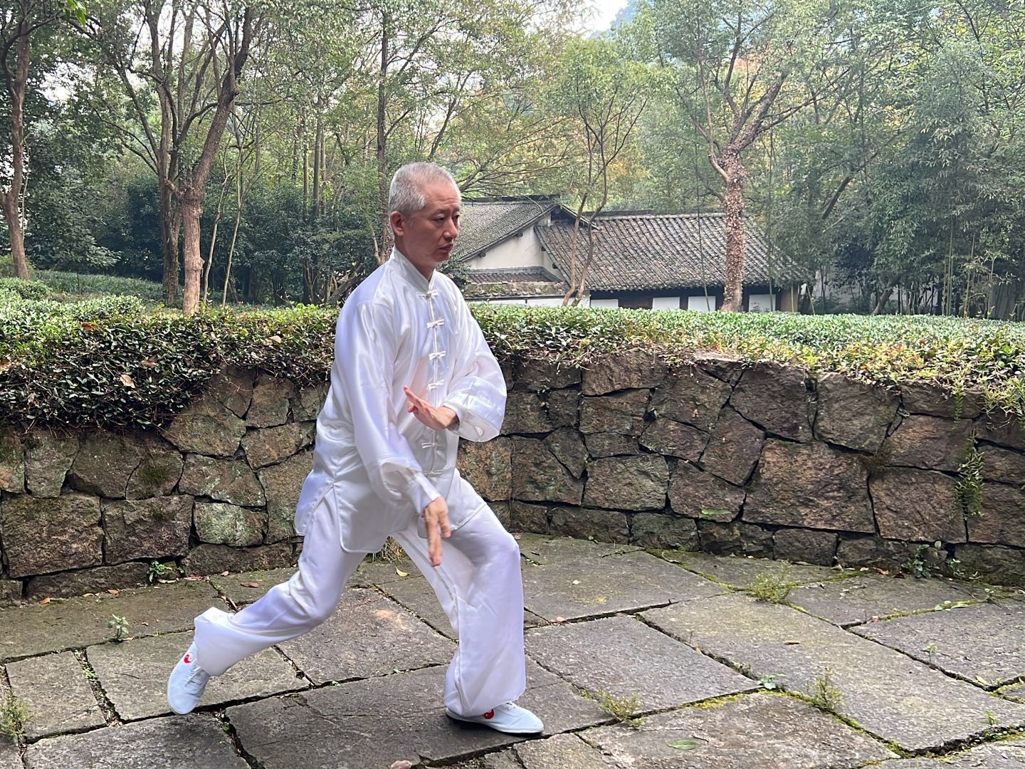 早上在綠意盎然的環(huán)境下體驗太極。