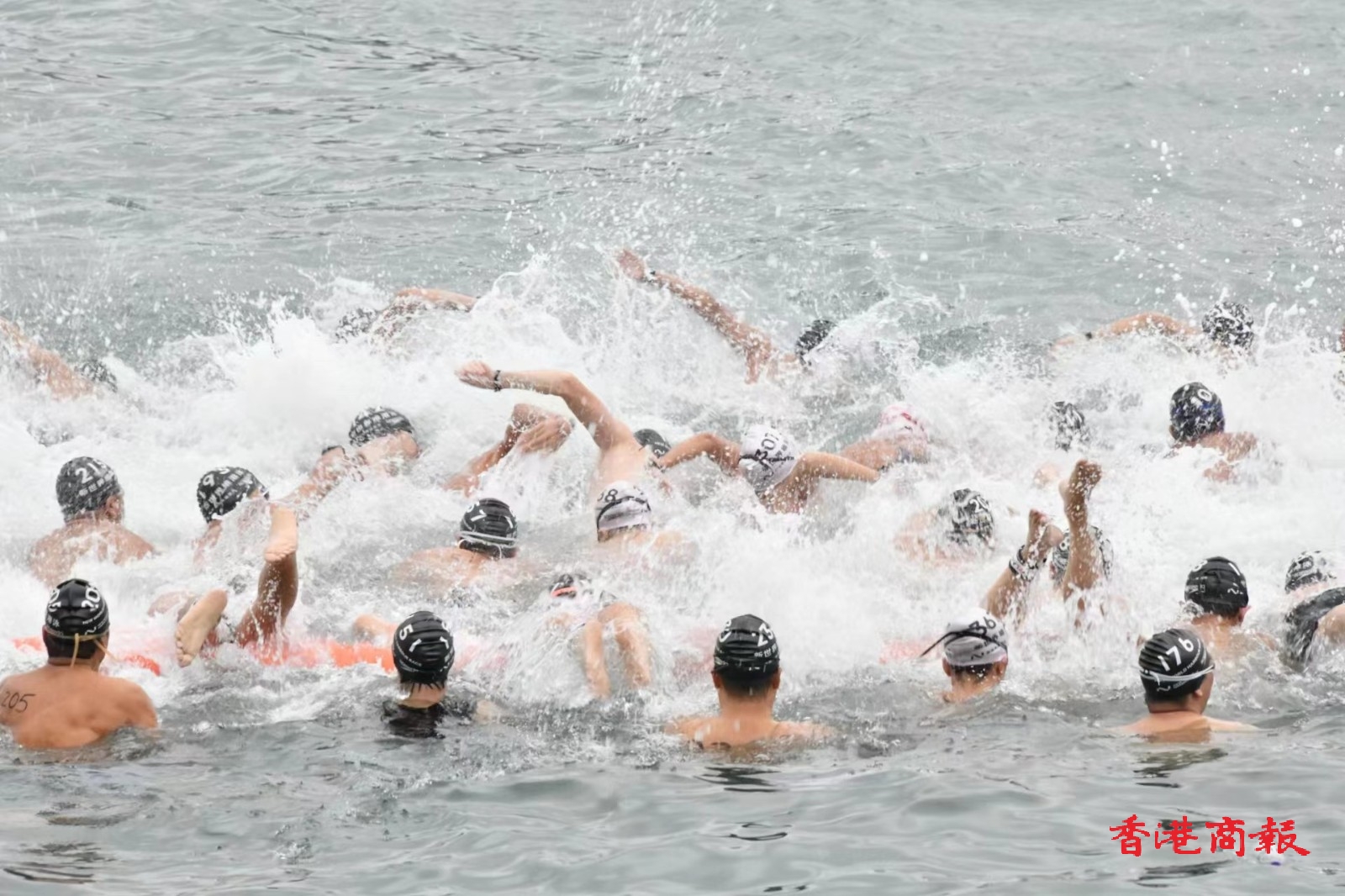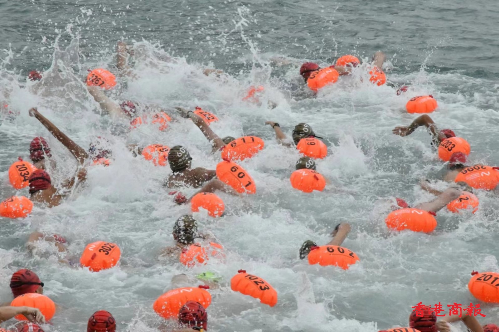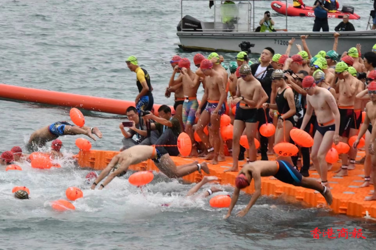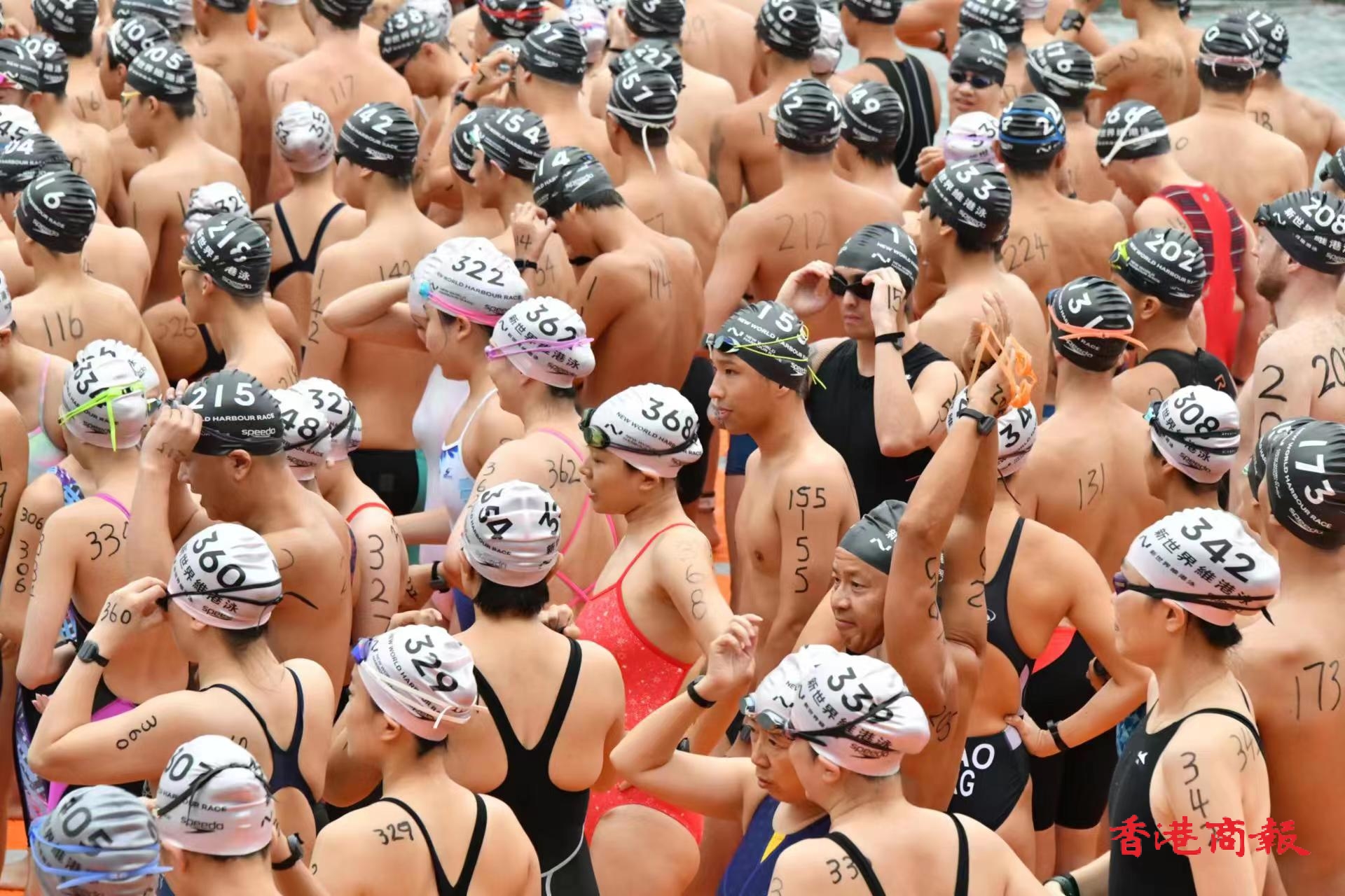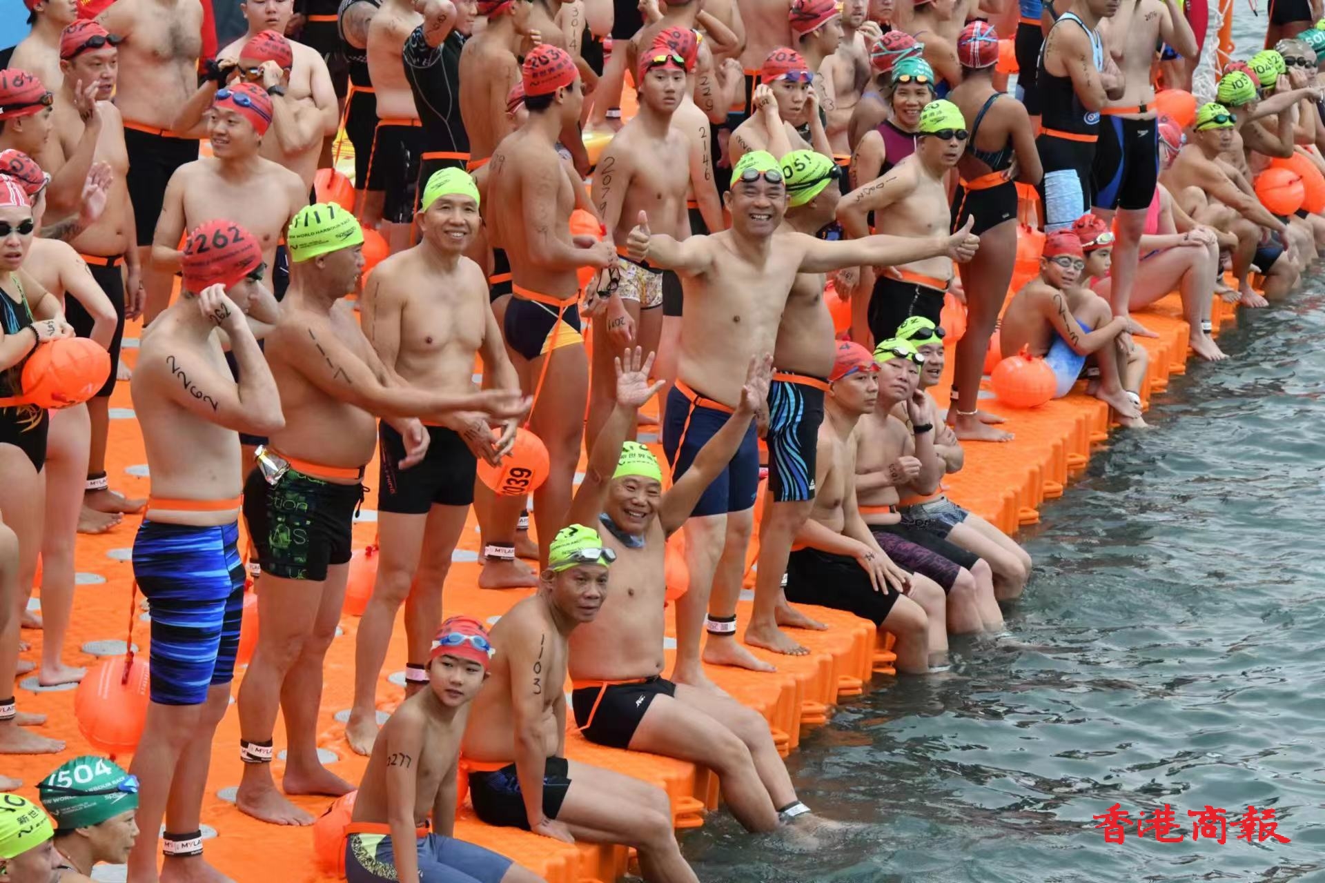 「新世界維港泳」今日(12日)早上於維多利亞港揭幕,4000名泳手由灣仔金紫荊廣場(chǎng)公眾碼頭出發(fā),游至終點(diǎn)尖沙咀星光大道,競(jìng)逐賽事各項(xiàng)殊榮。香港特別行政區(qū)政務(wù)司司長(zhǎng)陳國(guó)基主持起步禮。(蔡啟文攝)