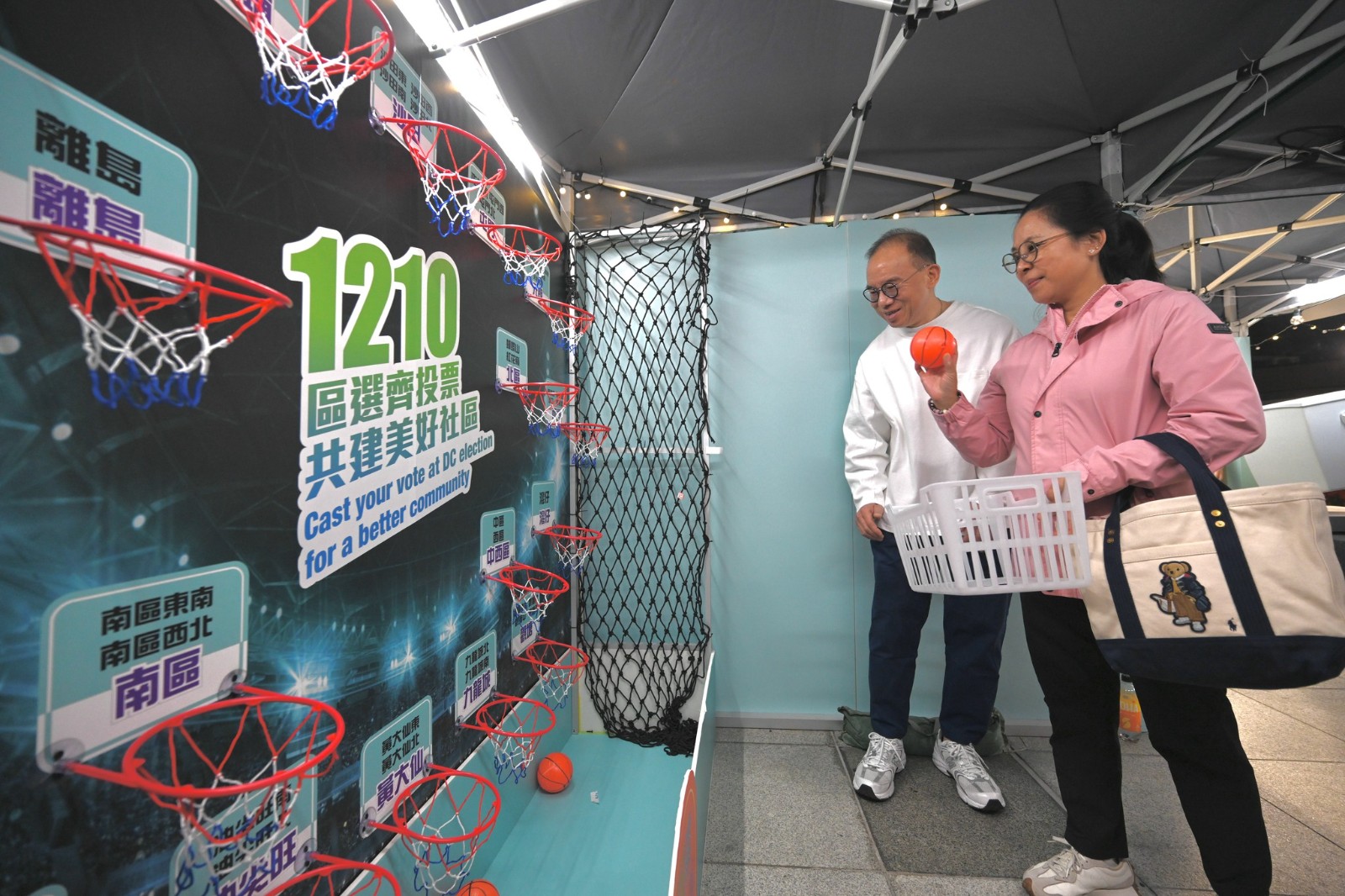 政制及內地事務局局長曾國衞早前分別到堅尼地城卑路乍灣海濱長廊及灣仔海濱的「區(qū)選夜繽紛」,與市民互動及玩遊戲;民政事務局局長麥美娟和多名副局長先後到訪設於紅磡市政大廈體育館、觀塘社區(qū)中心、青衣西南體育館及鯉魚門體育館等的「區(qū)選進社區(qū)」流動遊戲攤位;財經事務及庫務局局長許正宇則到訪奧海城二期的親子工作坊及展覽。一眾官員在活動現(xiàn)場派發(fā)宣傳單張和紀念品,宣揚1210區(qū)選齊投票的訊息,呼籲選民於投票日選出心儀的候選人,共建美好社區(qū)。