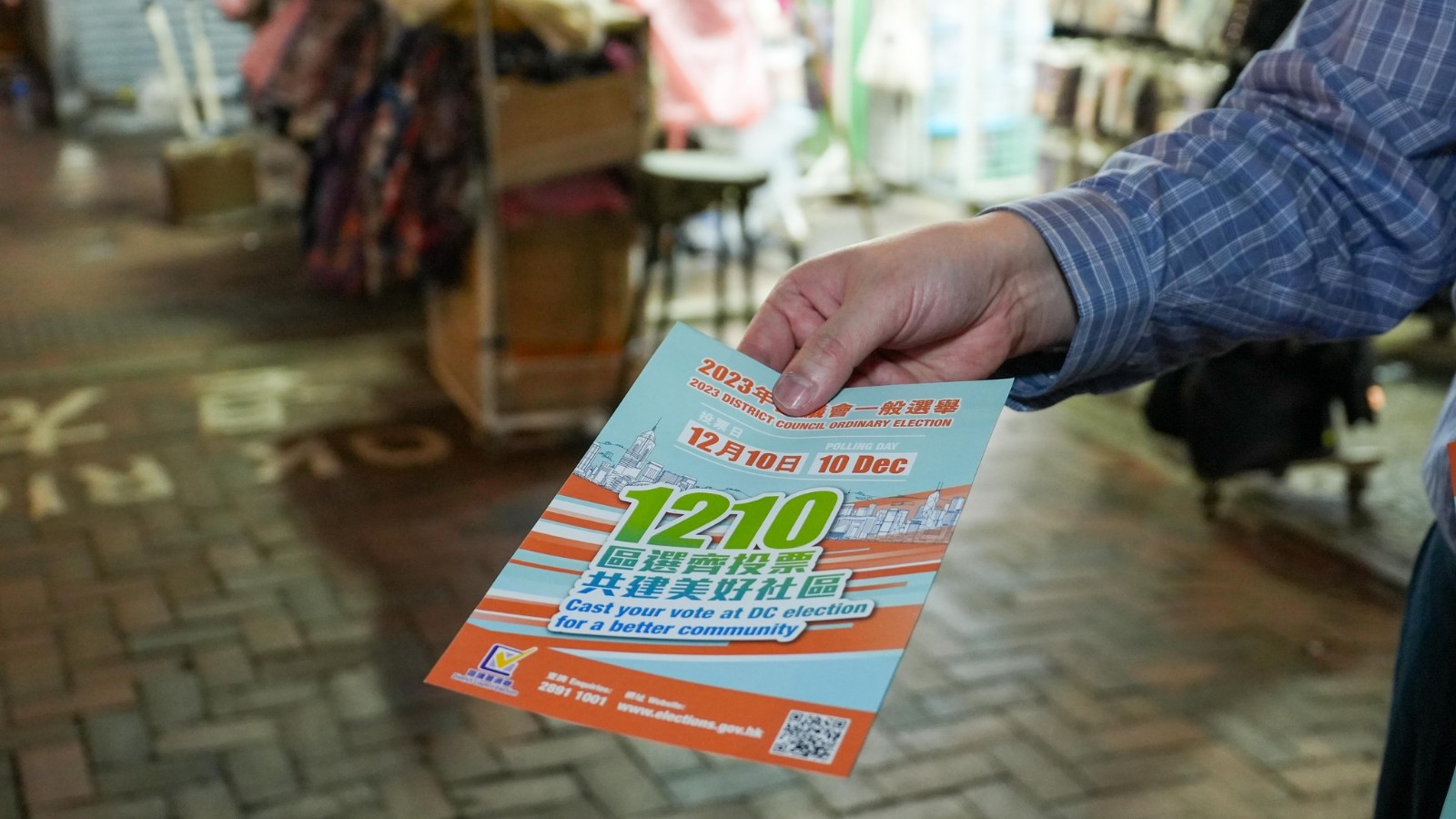 律政司義工隊在深水埗西九龍中心及近北河街一帶,派發(fā)區(qū)議會選舉宣傳單張。林定國FB圖片