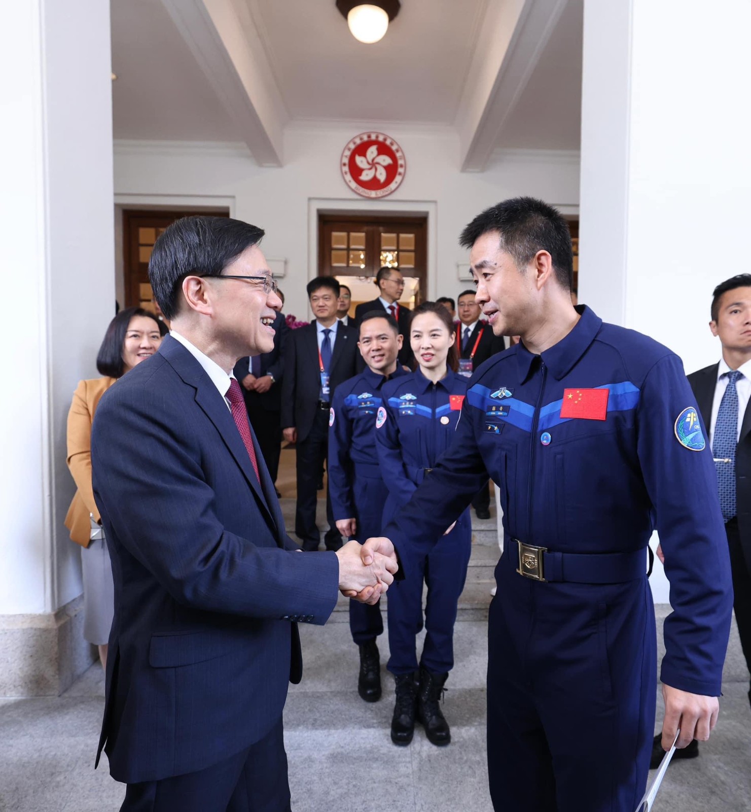 李家超指出,在他看來,各位航天員除具備個人本領(lǐng)和團隊精神以外,他們的感染力、魅力和「圈粉」能力,都是天上的水平,是香港青年人的榜樣。