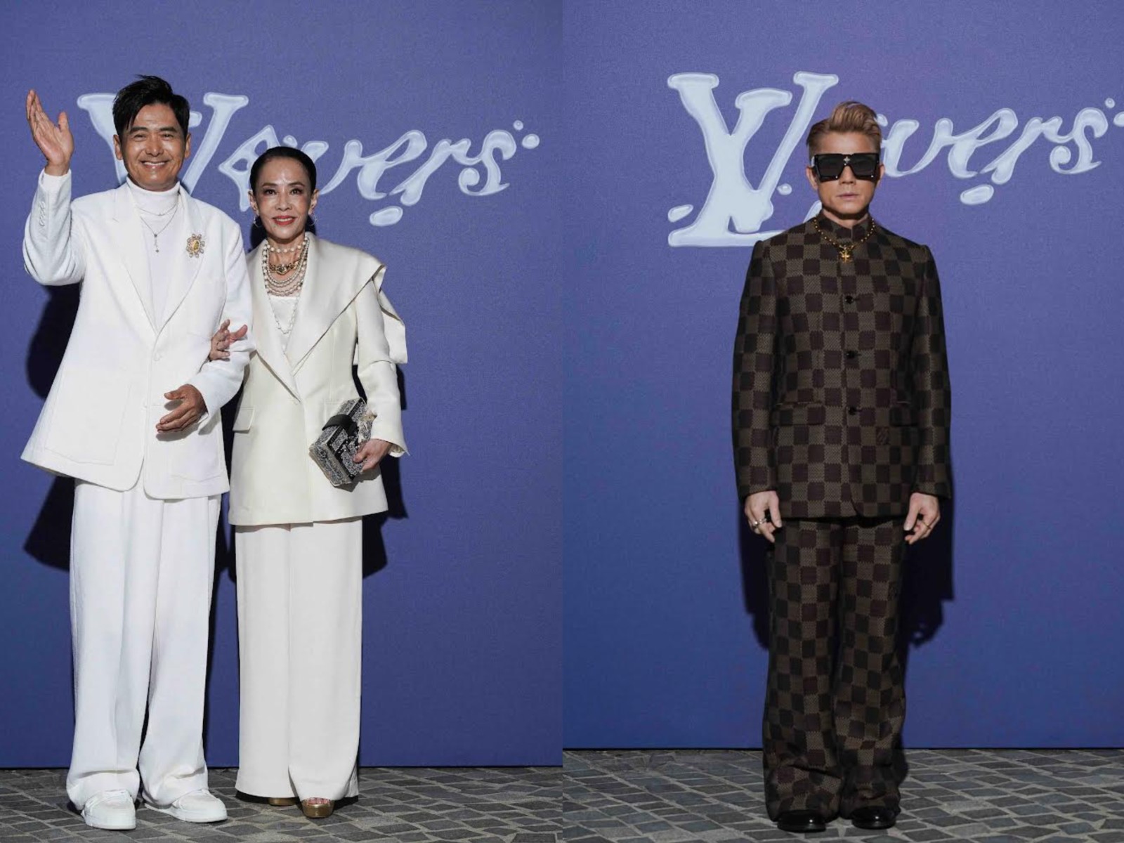 周潤(rùn)發(fā)及太太陳薈蓮(左)、郭富城(右)出席時(shí)裝秀。