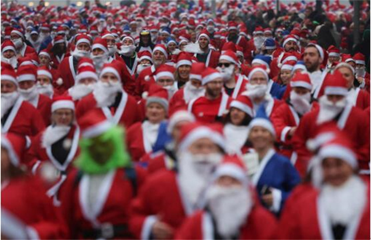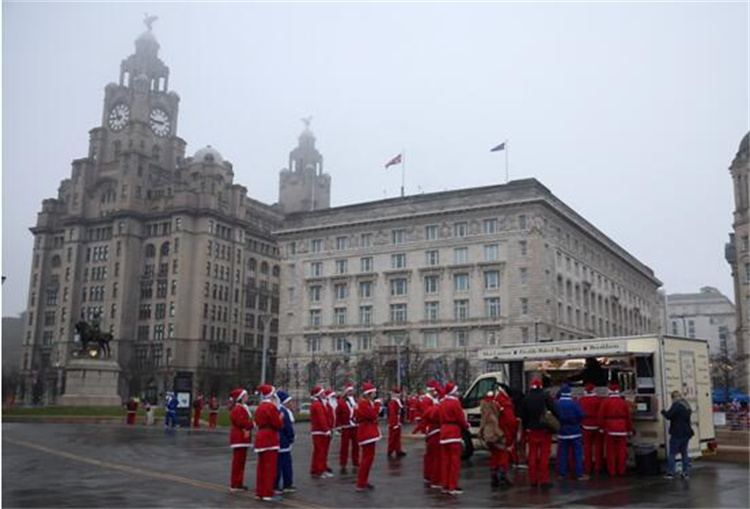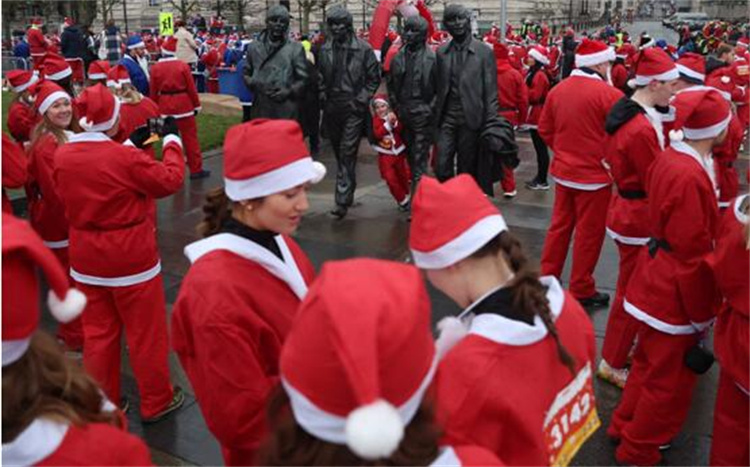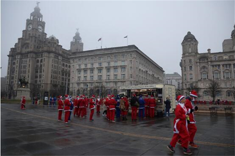 當天一早,利物浦就湧入數(shù)千名男女老少,打扮成聖誕老公公的模樣,還有不少人戴上白花花的假鬍鬚,參加這項長達五公里的「聖誕歡樂跑」活動。