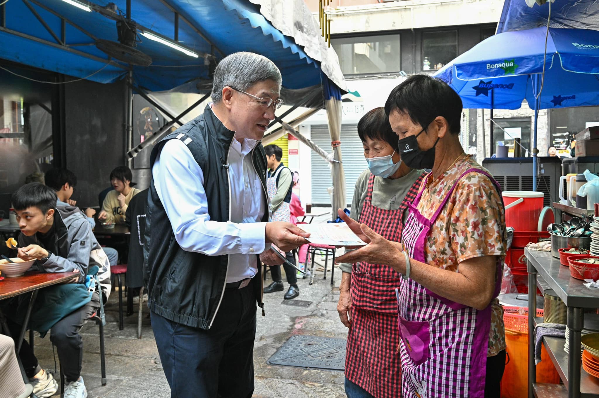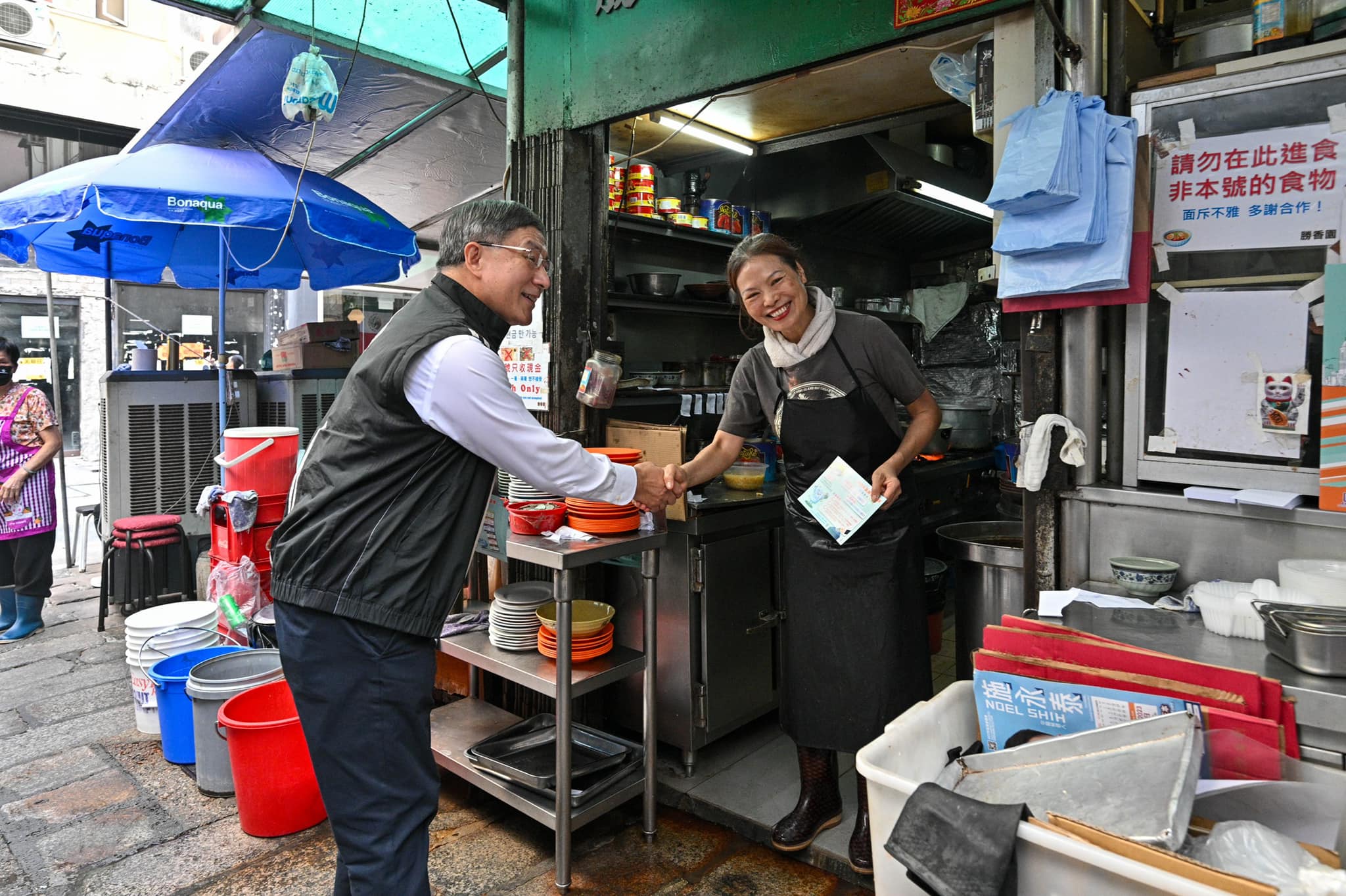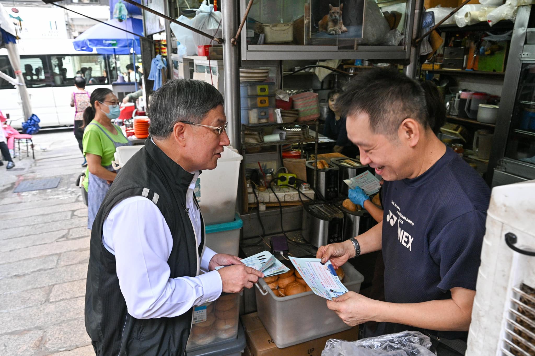 區(qū)議會(huì)選舉投票日即將於本周日舉行,全港選舉氣氛熾熱,仍而近日有人發(fā)布一些虛假消息,政務(wù)司副司長卓永興走進(jìn)大牌檔呼籲市民1210區(qū)選齊投票的同時(shí),亦作出澄清。卓永興今日(5日)到中環(huán)一家有半個(gè)世紀(jì)歷史的大牌檔,呼籲市民支持1210區(qū)議會(huì)選舉,以配合貼地宣傳區(qū)議會(huì)選舉的主旋律。