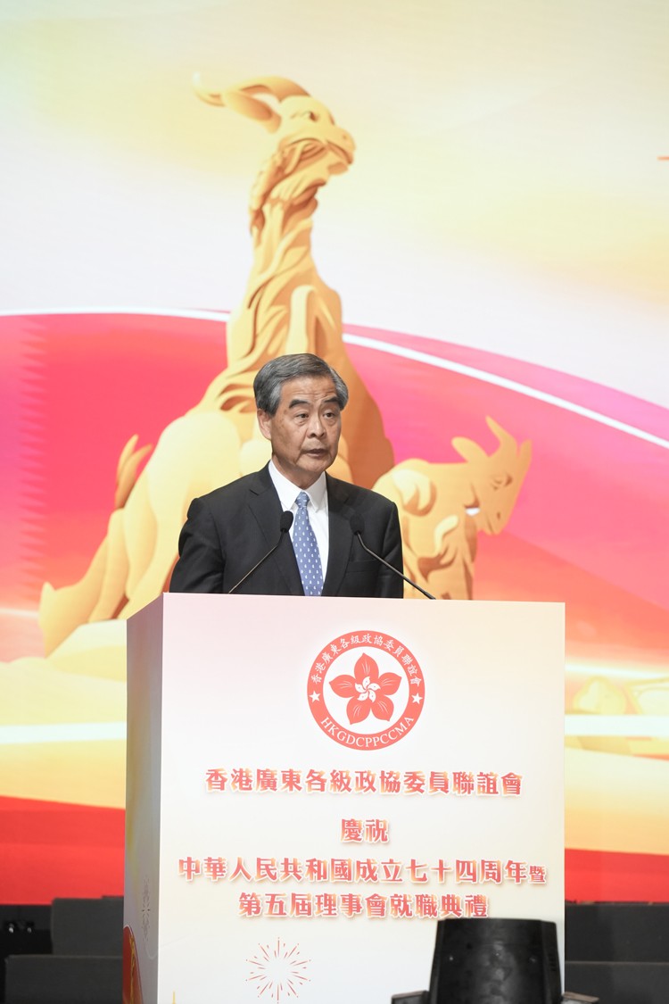 香港廣東各級(jí)政協(xié)委員聯(lián)誼會(huì)第五屆理事會(huì)就職典禮12月11日假香港會(huì)展中心順利舉行,由全國(guó)政協(xié)副主席梁振英、廣東省政協(xié)主席林克慶、外交部駐港公署副特派員方建明、律政司副司長(zhǎng)張國(guó)鈞、中聯(lián)辦協(xié)調(diào)部部長(zhǎng)朱文、香港國(guó)安公署聯(lián)絡(luò)局局長(zhǎng)鄧建偉等共同主禮。