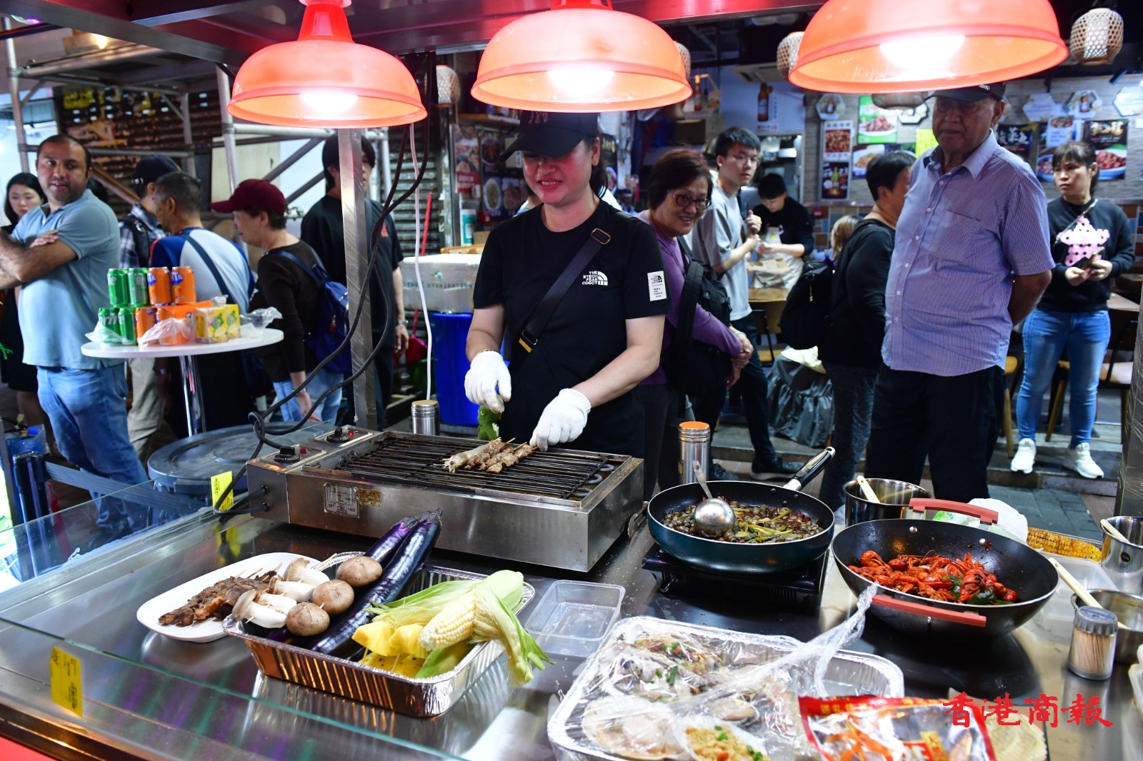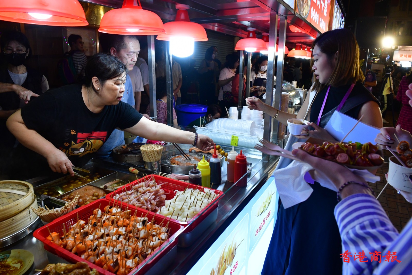 旅發(fā)局今日(15日)起在油麻地廟街推出為期半年的「廟街夜市」,在牌坊位置增設(shè)22個(gè)特色美食攤位和10個(gè)懷舊小食流動(dòng)攤檔,售賣點(diǎn)心、煎釀三寶、牛雜、土耳其咖啡、牛肉串、飛機(jī)欖等地道美食。