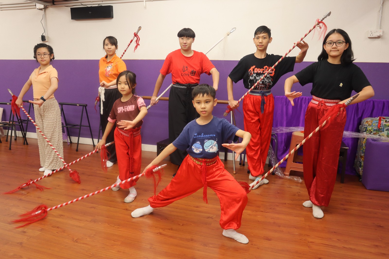 因青春期聲線變沉影響唱腔,馮熙堯(左)在老師的鼓勵(lì)下,改為專注練習(xí)動(dòng)作。 (馮瀚文攝)