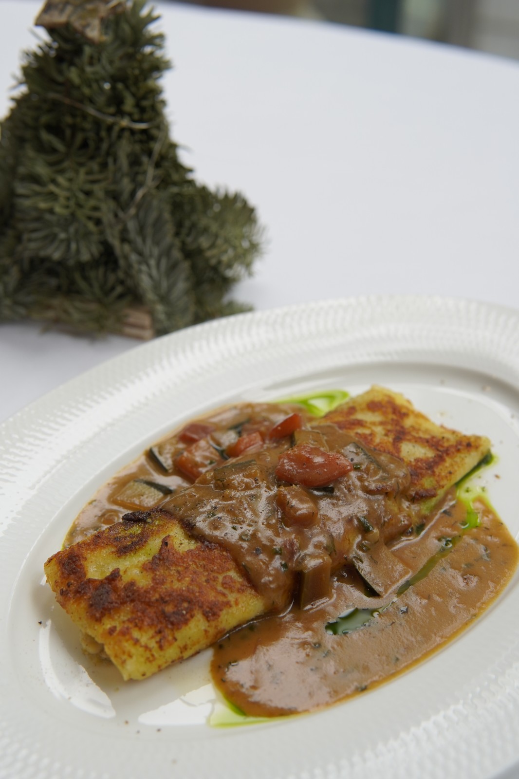 Crab Crepe(蟹肉薄餅),以柔軟的薄餅皮包裹著滿滿蟹肉,配上特製醬汁,味道鮮香。