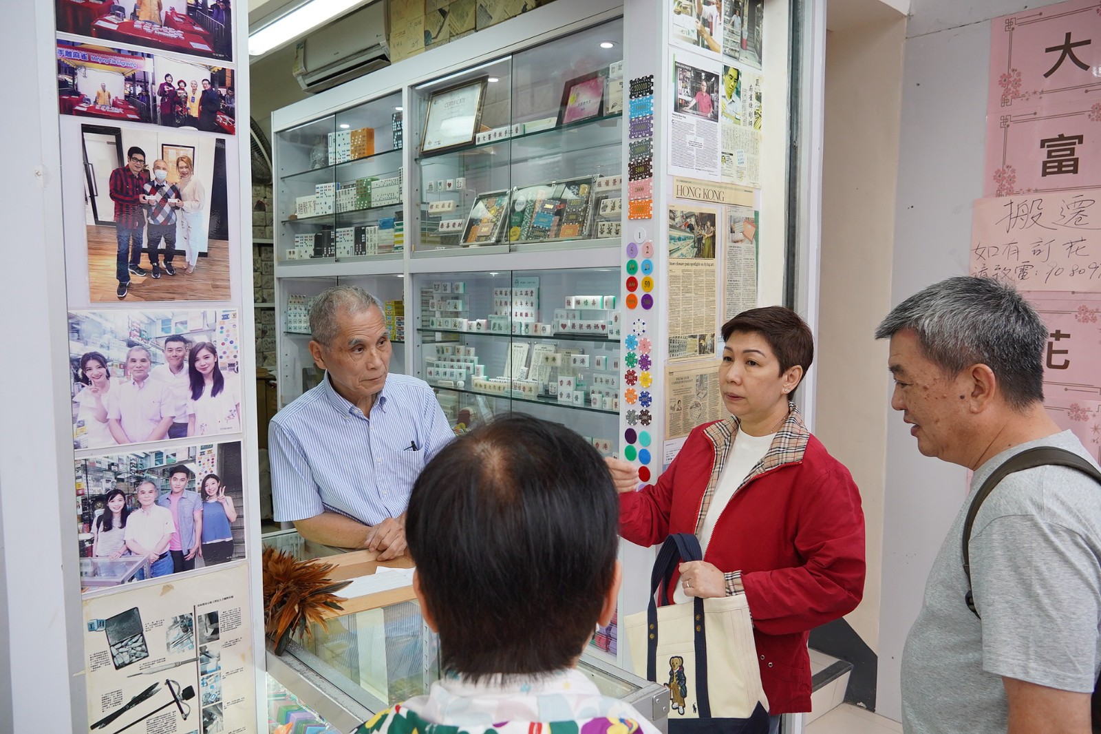 店舖外貼滿景叔多年來(lái)接受中外傳媒訪問(wèn)的圖片,可見(jiàn)他由昔日黑髮做到今日白髮蒼蒼。