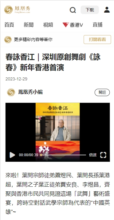 責(zé)任編輯:靜文 有片|霸屏港媒!舞劇《詠春》,不愧是你↓