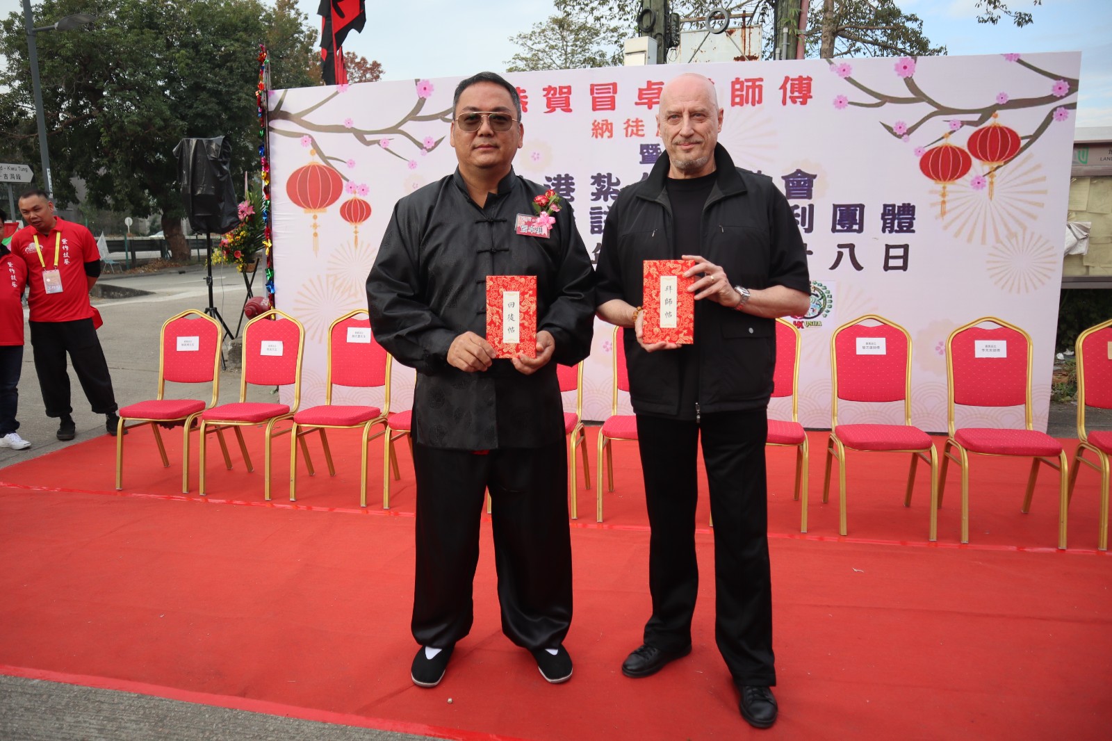 儀式於2023年12月28日上午,在上水古洞煙寮區(qū)土地廟廣場舉行,見證這場盛事的來賓,有政界人士包括比利時駐港總領事David Lomastro、中聯(lián)辦新界工作部副處長邸智泉、新界社團聯(lián)會北區(qū)地區(qū)委員會主席溫和輝、北區(qū)區(qū)議員姚銘、元朗區(qū)議員陳嘉輝,另有武術界人士包括客家功夫文化研究會會長趙式慶、香港柔功門鄭文輝師傅、香港東江周家螳螂李天來師傅、羅旁紀念國術體育總會總教練駱志雄。