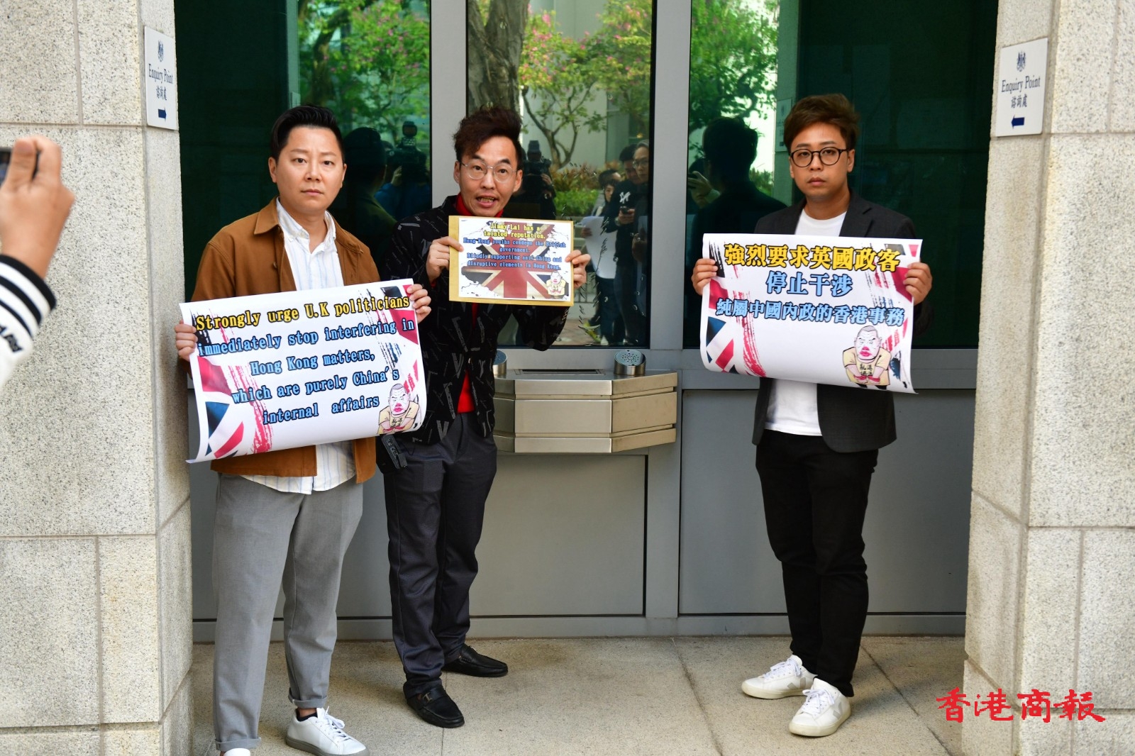 亂港頭目黎智英涉嫌違反香港國(guó)安法的案件正在香港法院進(jìn)行審訊,惟英國(guó)首相辛偉誠(chéng)及外交大臣卡梅倫強(qiáng)行要求釋放黎智英,妄圖干預(yù)本港司法獨(dú)立。事件引起香港各界市民不滿,紛紛自發(fā)組織到英國(guó)駐港澳總領(lǐng)事館抗議。今日(13日)先後有工聯(lián)會(huì)社會(huì)事務(wù)委員會(huì)、香港海南社團(tuán)總會(huì)、一群西貢居民,以及一班香港青年代表前來(lái)抗議。