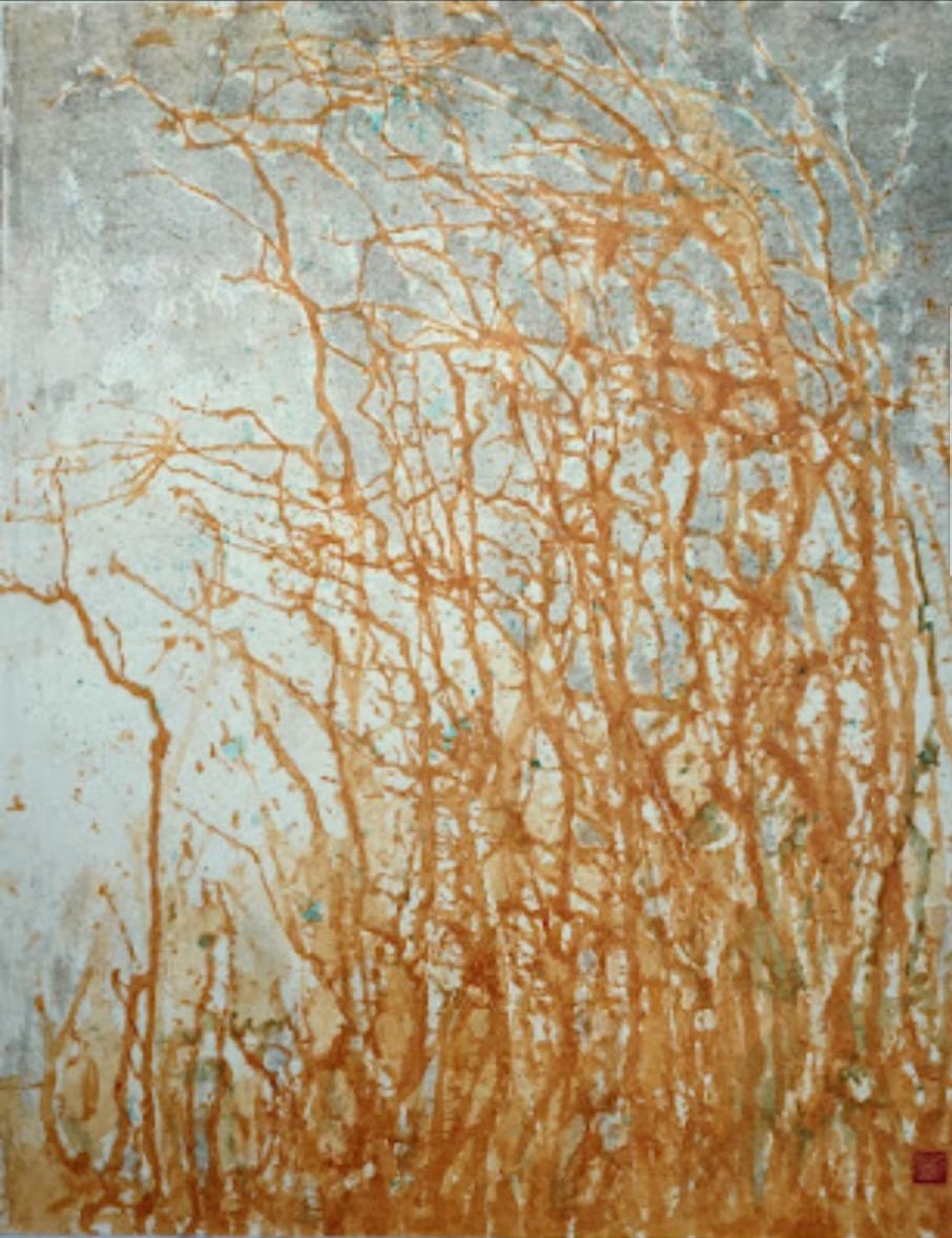 刁綺蓮作品《寒冬樹影》,61×79cm。