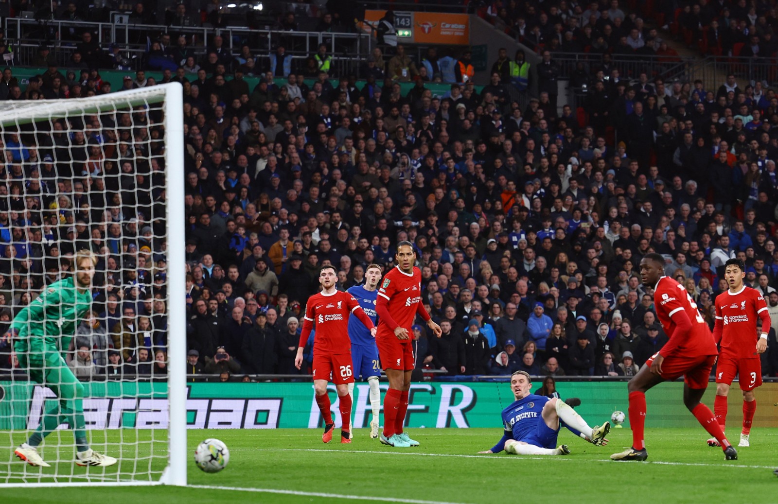 利物浦傷兵滿營,艾利臣比加、阿歷山大阿諾特、穆罕默德沙拿及達(dá)雲(yún)紐尼斯等多名主力都未能披甲;相反,車路士就是強(qiáng)兵盡出,史達(dá)寧、高爾彭馬及安素費(fèi)南迪斯等主力都可正選列陣。車仔上半場有史達(dá)寧近射破門,不過助攻的尼高拉斯積遜越位在先,入球無效。紅軍亦有入球機(jī)會(huì),可惜加普的頭槌攻門中柱彈出,雙方上半場互交白卷。
