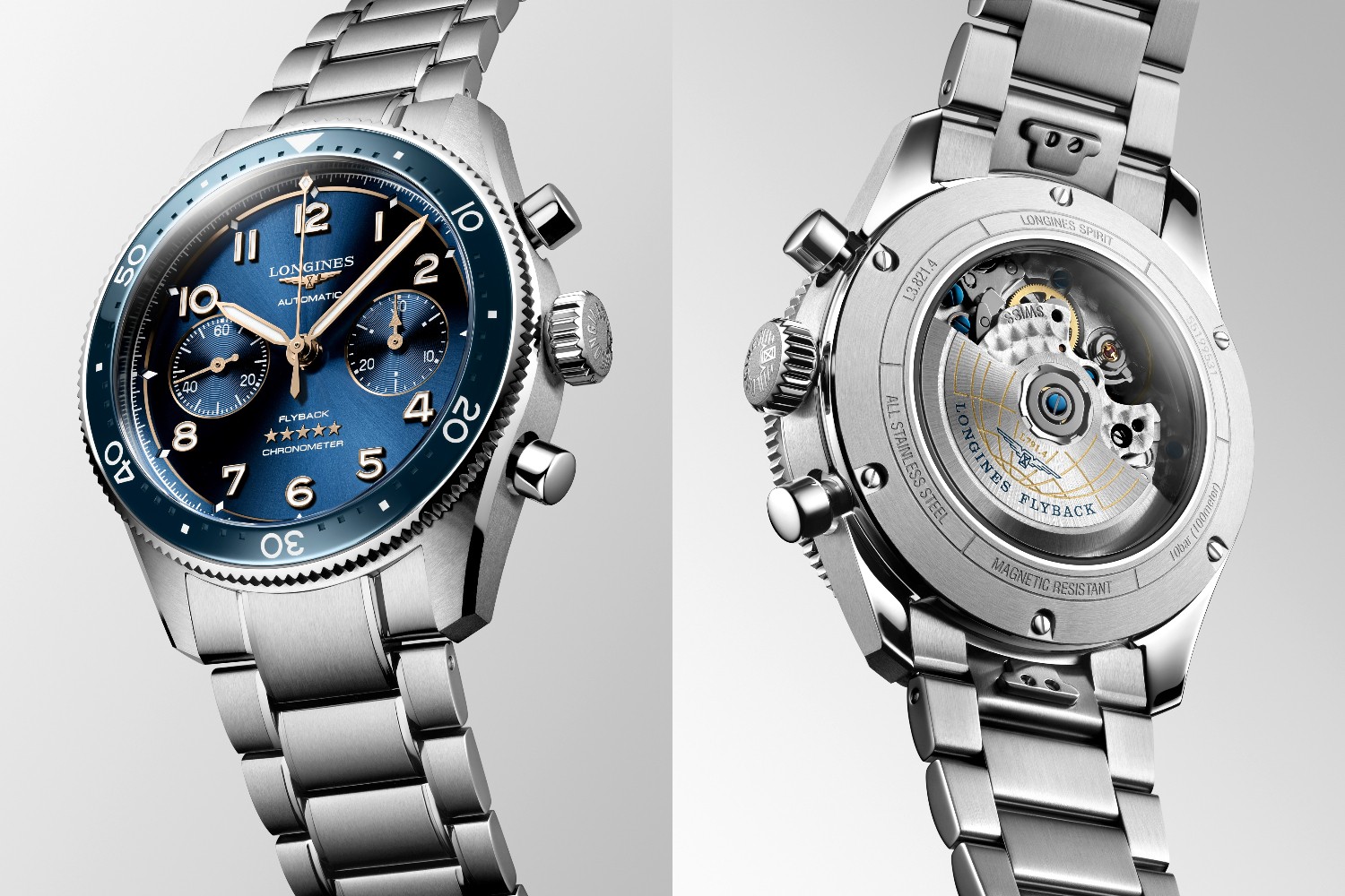 Spirit Flyback系列腕表是品牌的另一傑作,配備飛返功能,此功能特別為飛行員提供了一種實(shí)用且快速的方法來連續(xù)測量多個時間段的飛行距離,從而幫助他們進(jìn)行導(dǎo)航和定位。 Spirit Flyback腕表配備獨(dú)家矽游絲機(jī)芯,動力儲存達(dá)68小時,抗磁且極其精準(zhǔn)。透明表底展示了機(jī)芯的所有細(xì)節(jié),包括刻有代表品牌先行者系列的地球儀和Spirit Flyback系列名稱。
