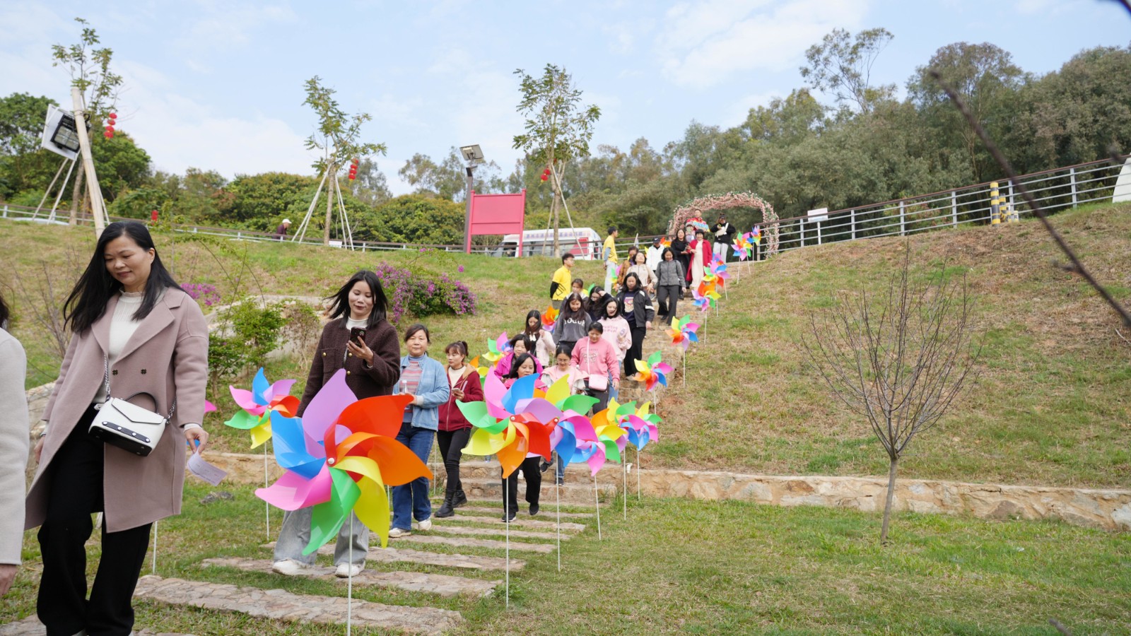 春和景明,惠風和暢。3月8日上午,博羅縣羅浮山景區(qū)女幹部職工約100人齊聚在玄碧湖畔開展紀念「三八」國際婦女節(jié)114周年活動。本次活動契合「發(fā)現(xiàn)鄉(xiāng)村之美」,利用營地的自然場地,通過與自然結(jié)合的互動創(chuàng)意美陳,以「水、樹、花、風、石、山」等自然元素為關(guān)鍵詞,設置了互動點或拍照點,讓參與者在互動的過程中發(fā)現(xiàn)鄉(xiāng)村之美。