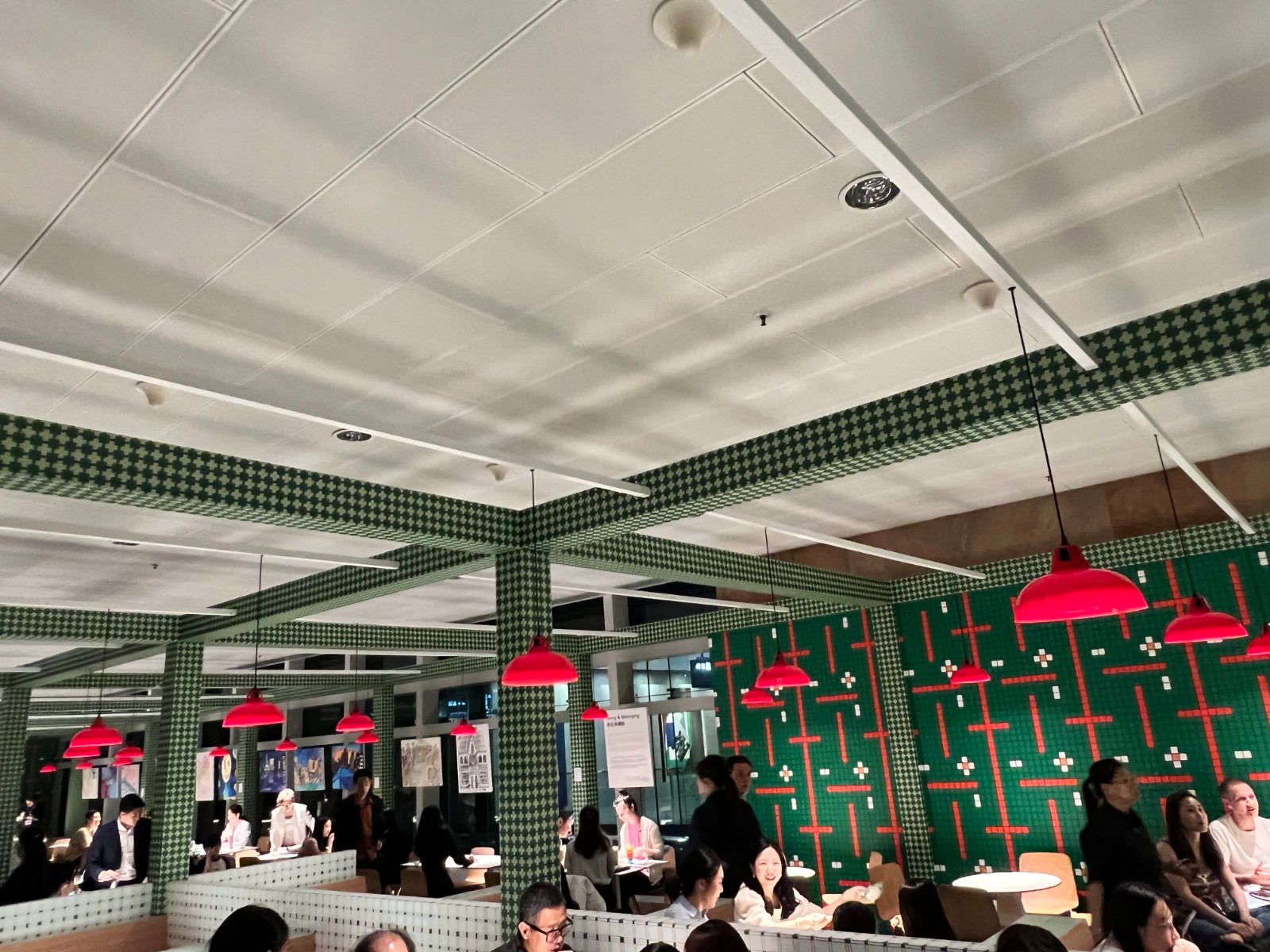 「茶餐廳 」提供地道美食及飲品,包括菠蘿包、蛋撻及港式奶茶等,將地道文化巧妙融入當(dāng)代藝術(shù)展中,突顯香港中西文化匯聚的特色。紅色掛燈、花磚地板都是必到打卡位。
