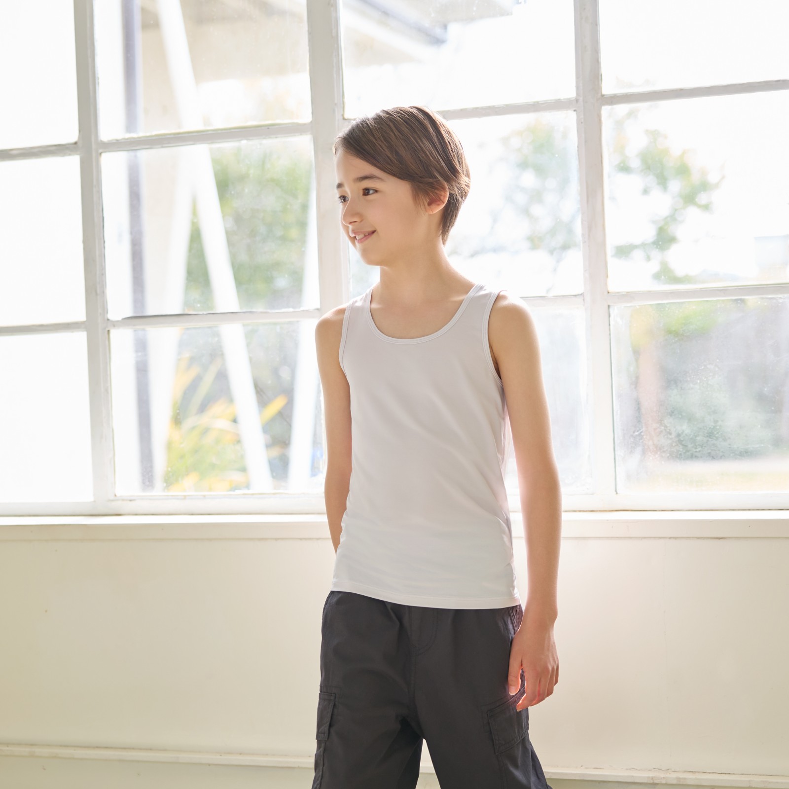 天氣炎熱潮濕時想保持涼爽,可選擇AIRism系列,物料結(jié)合速乾、柔滑和清涼感等功能。系列棉質(zhì)T恤今年有印花款登場,涼爽之餘也夠時尚。上學(xué)必備的童裝AIRism網(wǎng)紋背心,透氣度高又不會過於透膚,即使在校內(nèi)跑跑跳跳,也不會汗?jié)褚壮簟?/p>