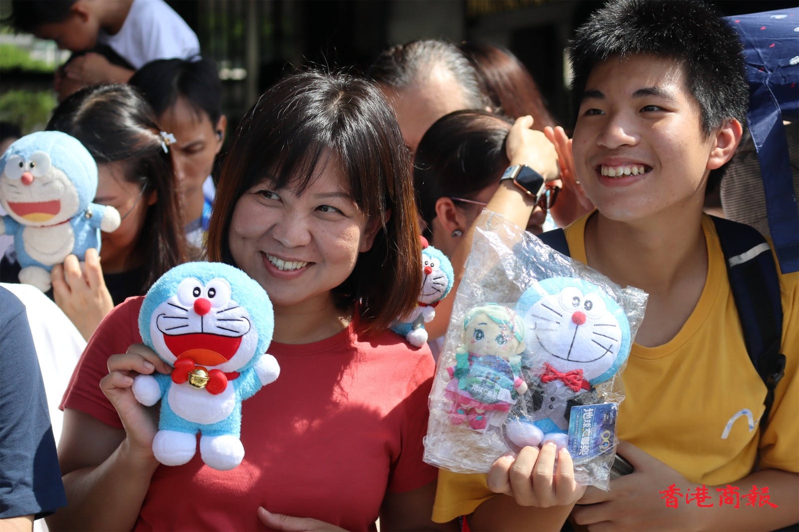 星光大道及尖沙咀海旁的「100%多啦A夢 & FRIENDS 」免費展區(qū)今天(11日)最後一日開放。主辦單位分別於上午10時,下午1時、4時及7時,舉辦共4場「多啦A夢與好友」感謝祭,多啦A夢與4位好友大雄、靜香、小夫及胖虎現(xiàn)身免費展區(qū),並走出星光大道向在場觀眾道謝,每場約15分鐘。有市民感到不捨一早到場排隊,帶同多啦A夢公仔來「打卡」;亦有家長趁免費展區(qū)最後一日開放,帶子女到場。