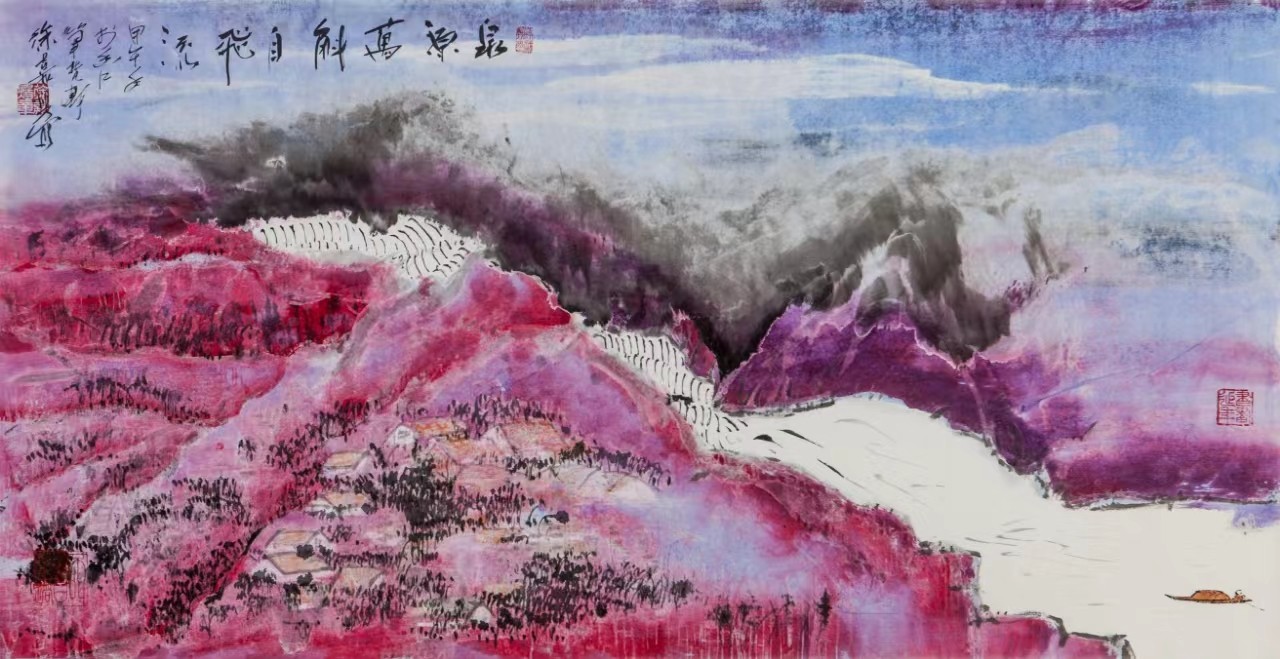 徐嘉煬作品《泉源萬斛自飛流》,68x136cm,2014年。