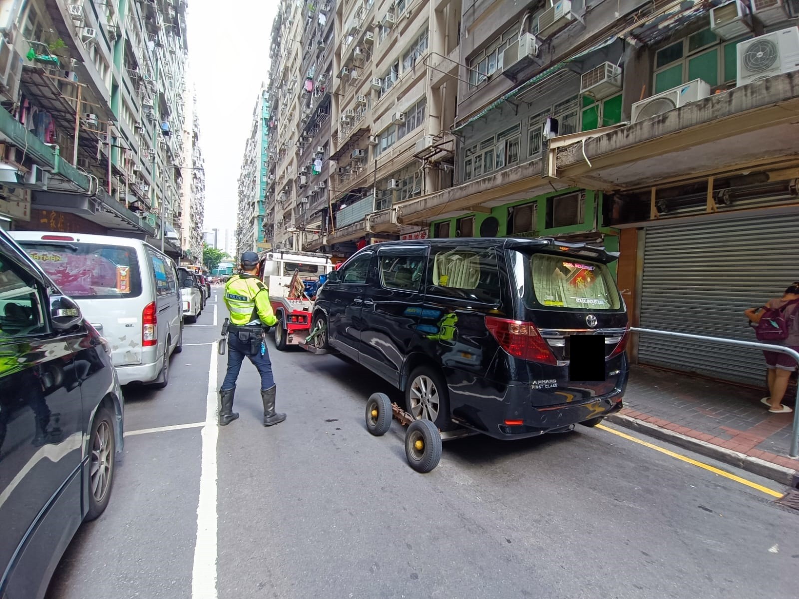警方提醒市民,如有司機違例泊車,造成交通嚴重阻塞,或?qū)ζ渌缆肥褂谜邩?gòu)成危險,警方除會多次票控有關(guān)車輛及檢控司機外,亦會不予警告下將車輛即時拖走。 警方呼籲駕駛?cè)耸浚形鹨蛞粫r之便違例停泊車輛。西九龍總區(qū)將持續(xù)打擊重點交通違例事項,以確保道路暢順及保障道路使用者安全。(記者 區(qū)天海)