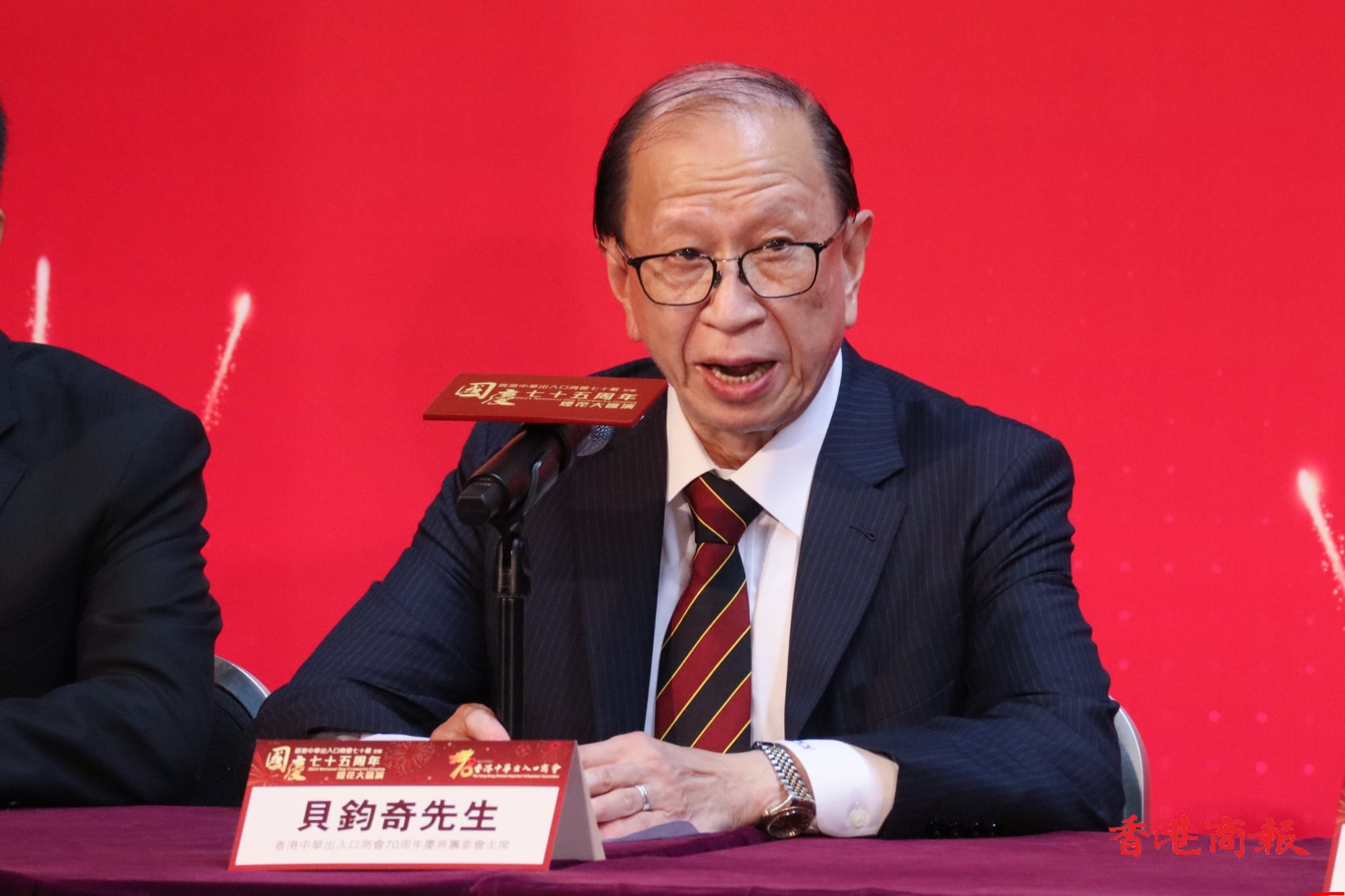 香港中華出入口商會70周年慶典籌委會主席貝鈞奇致辭。