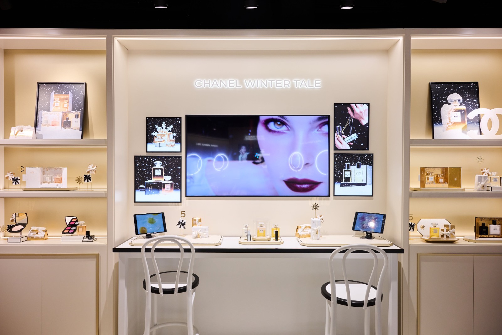在香水美妝區(qū),能感受品牌經(jīng)典N°5香水,現(xiàn)場有專人為參觀者挑選合適的香水。最新的N°5 Purse Spray是一款可隨身攜帶的香水首飾鏈,管內(nèi)是品牌香水N° 5 L’EAU Eau de Toilette或N°5 Eau de Parfum,首飾鏈上附設(shè)綴有品牌創(chuàng)始人Chanel女士的幸運數(shù)字「5」裝飾。產(chǎn)品可戴於腕間,配合製作場內(nèi)限定的節(jié)日心意卡,是節(jié)日禮物的首選。節(jié)日限定N°5 EAU DE PARFUM的瓶身披上一重「冬雪」,由人手點綴於瓶肩,恍如灑上白色雪霜,為這款繁花香調(diào)添上新意。