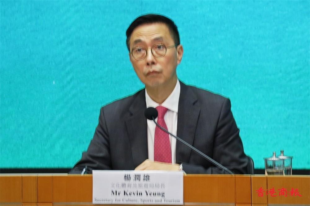 記者會由財(cái)政司副司長黃偉綸、文化體育及旅遊局局長楊潤雄主持,香港旅遊發(fā)展局總幹事程鼎一亦出席。
